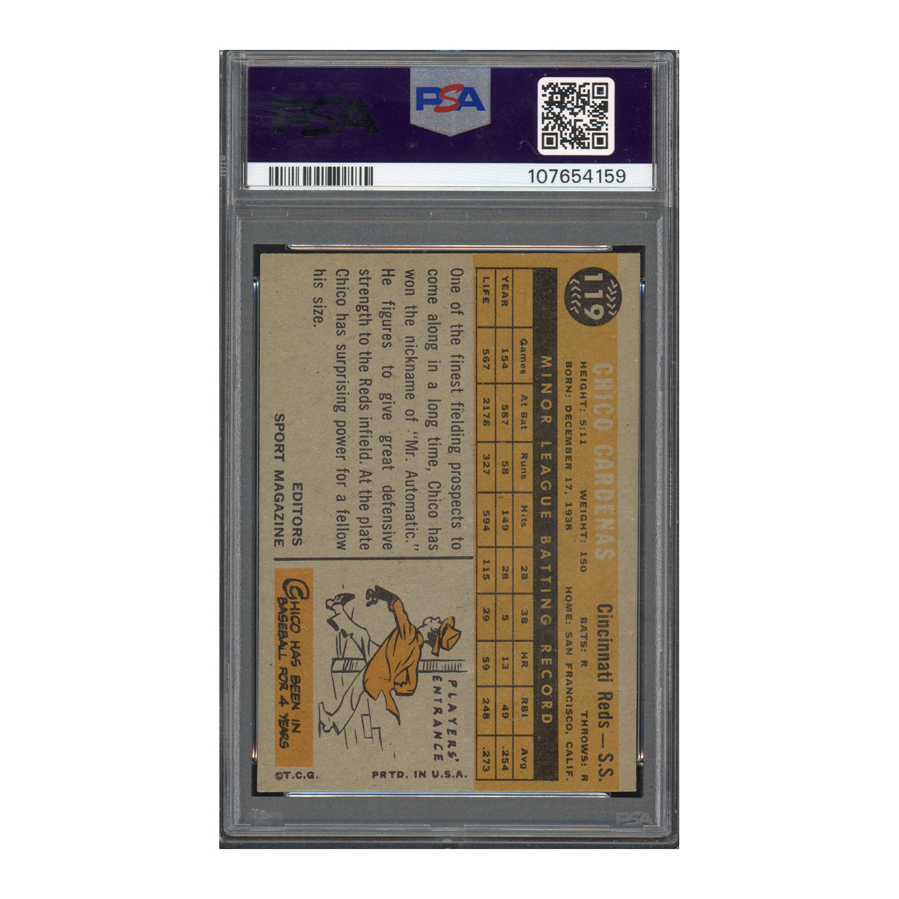 1960 Topps #119 Leo “Chico” Cardenas RC – Signed – PSA 7, Auto 10 – POP 4; None Higher