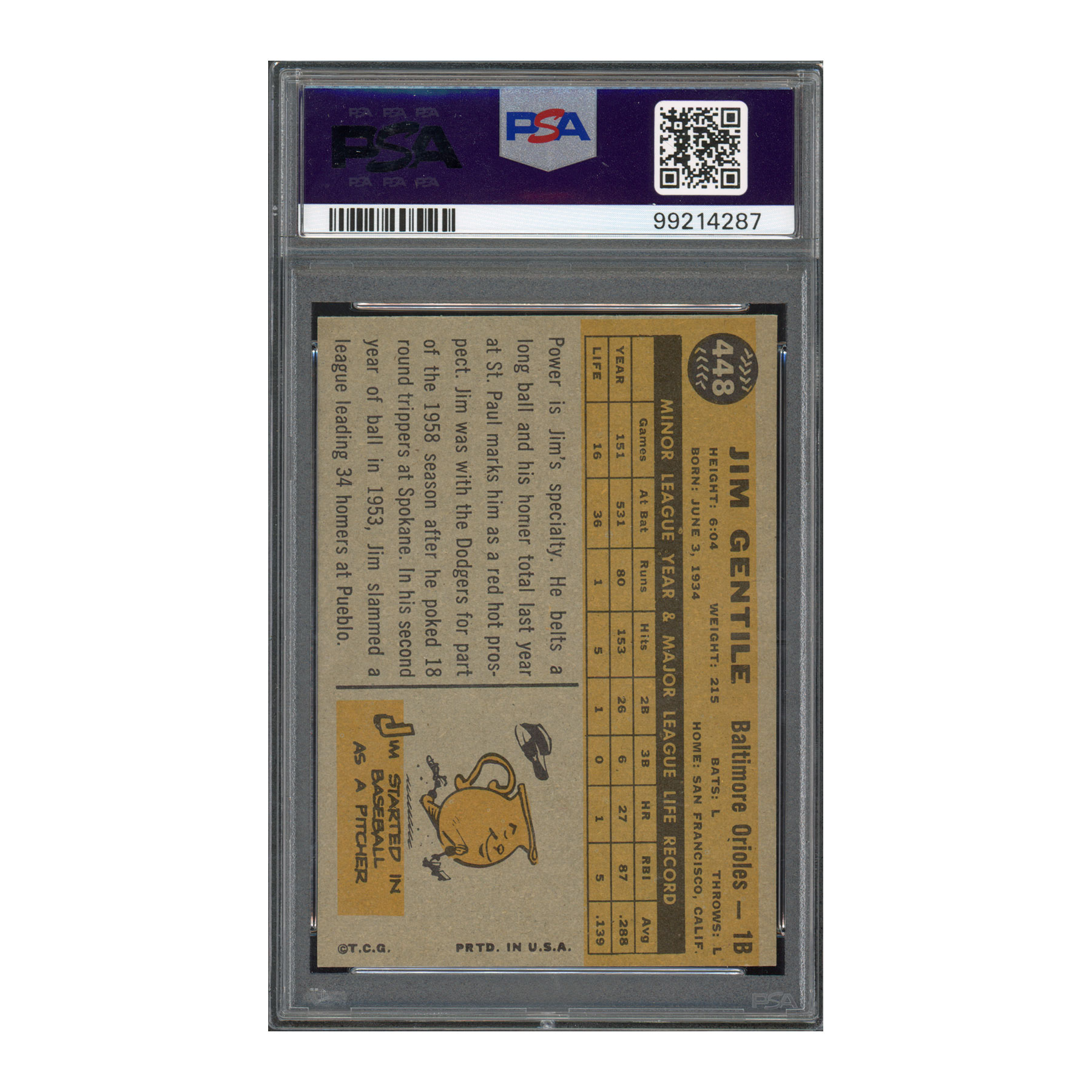 1960 Topps #448 Jim Gentile PSA 4 Auto 10 Signed RC Rookie Autograph