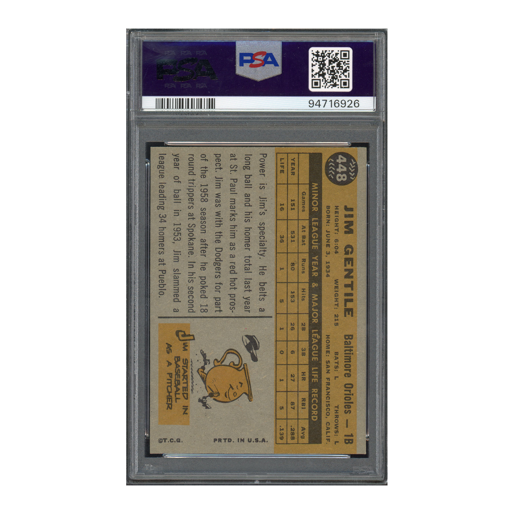 1960 Topps #448 Jim Gentile PSA 7 Auto 10 Signed RC Rookie Autograph
