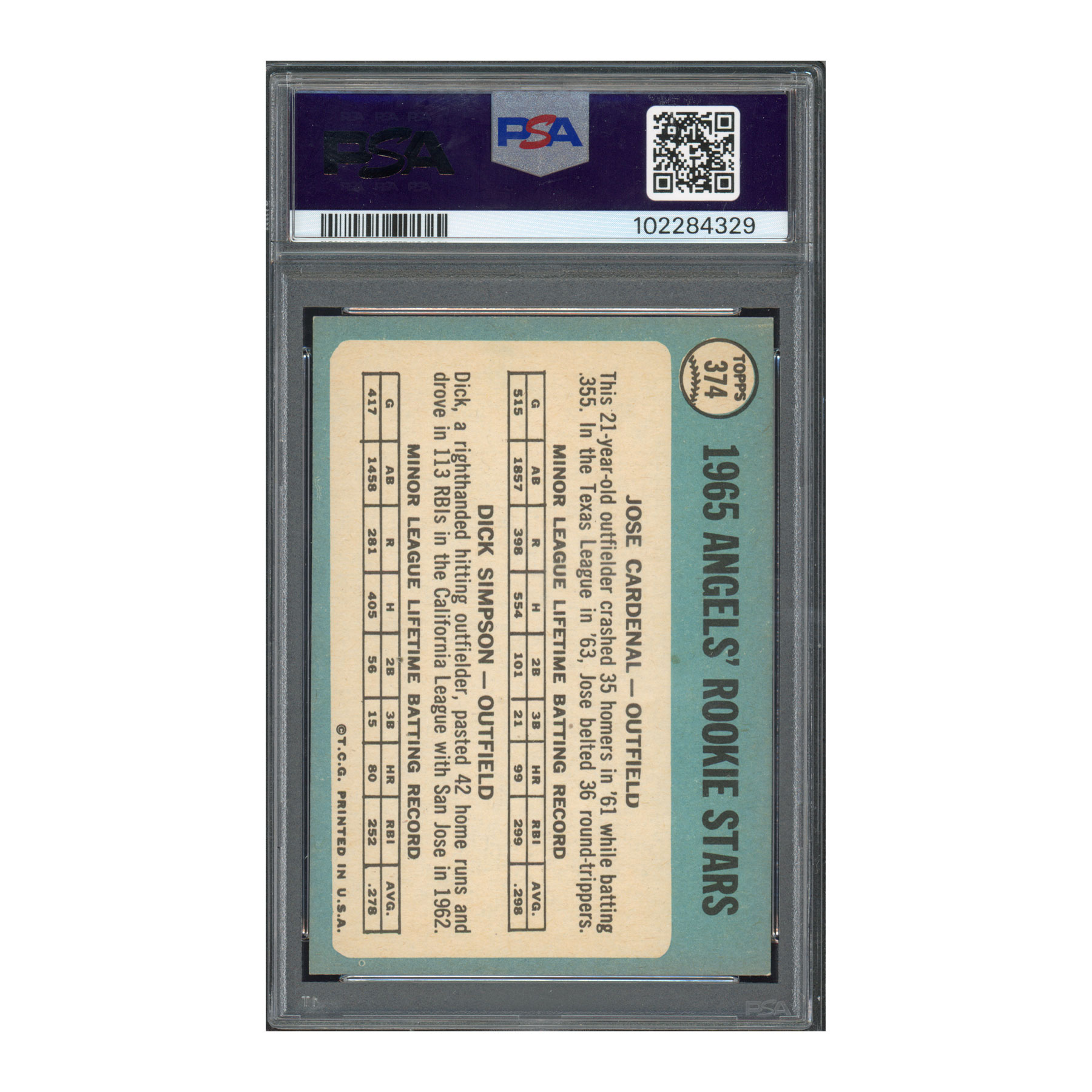1965 Topps #374 Angels Rookies – PSA 7 NM – Dick Simpson & José Cardenal RC – Autographed
