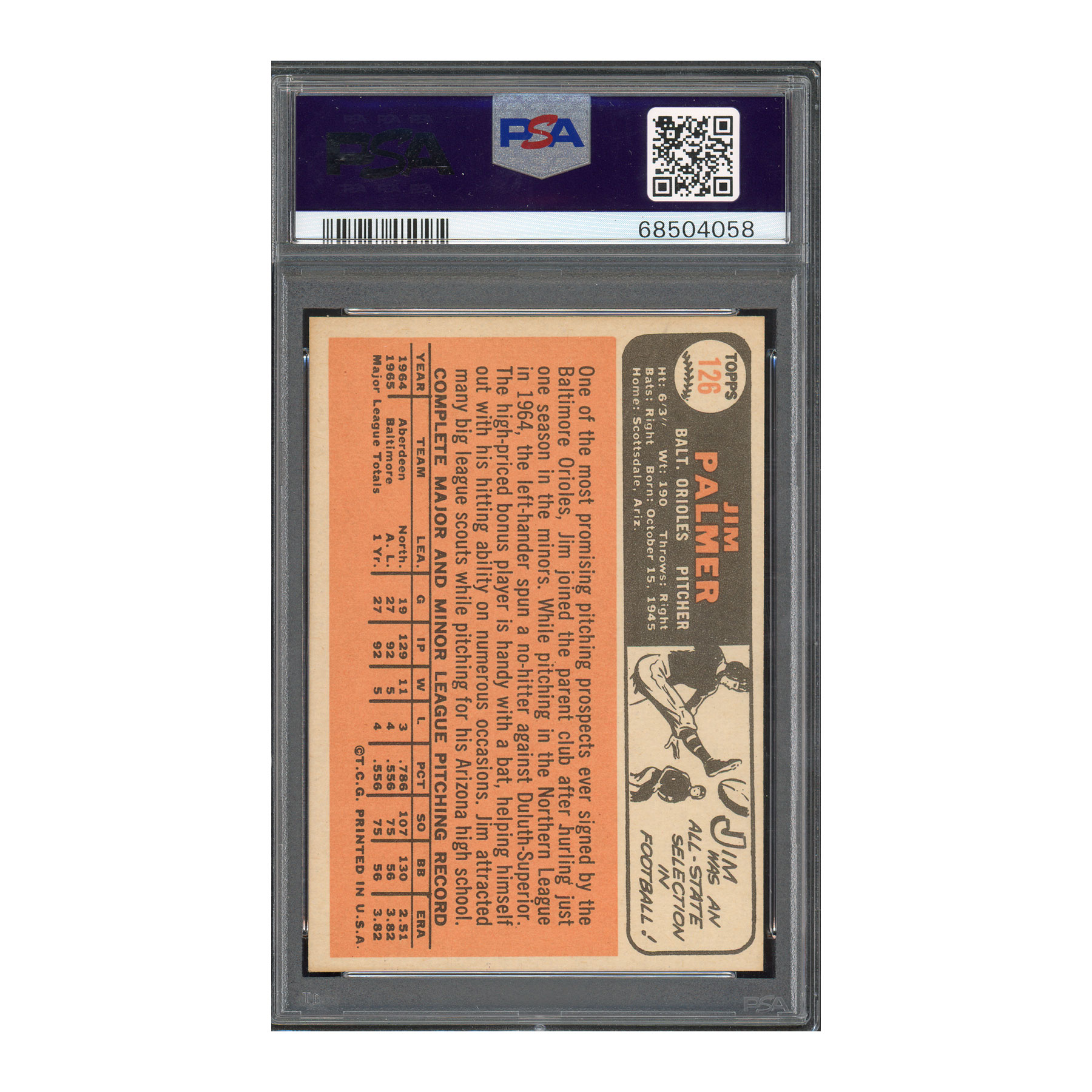Add this 1966 Topps Jim Palmer PSA 7 Auto 9 HOF Signed RC Rookie Auto Autograph Pop 10 card to your collection today and own a piece of baseball history.