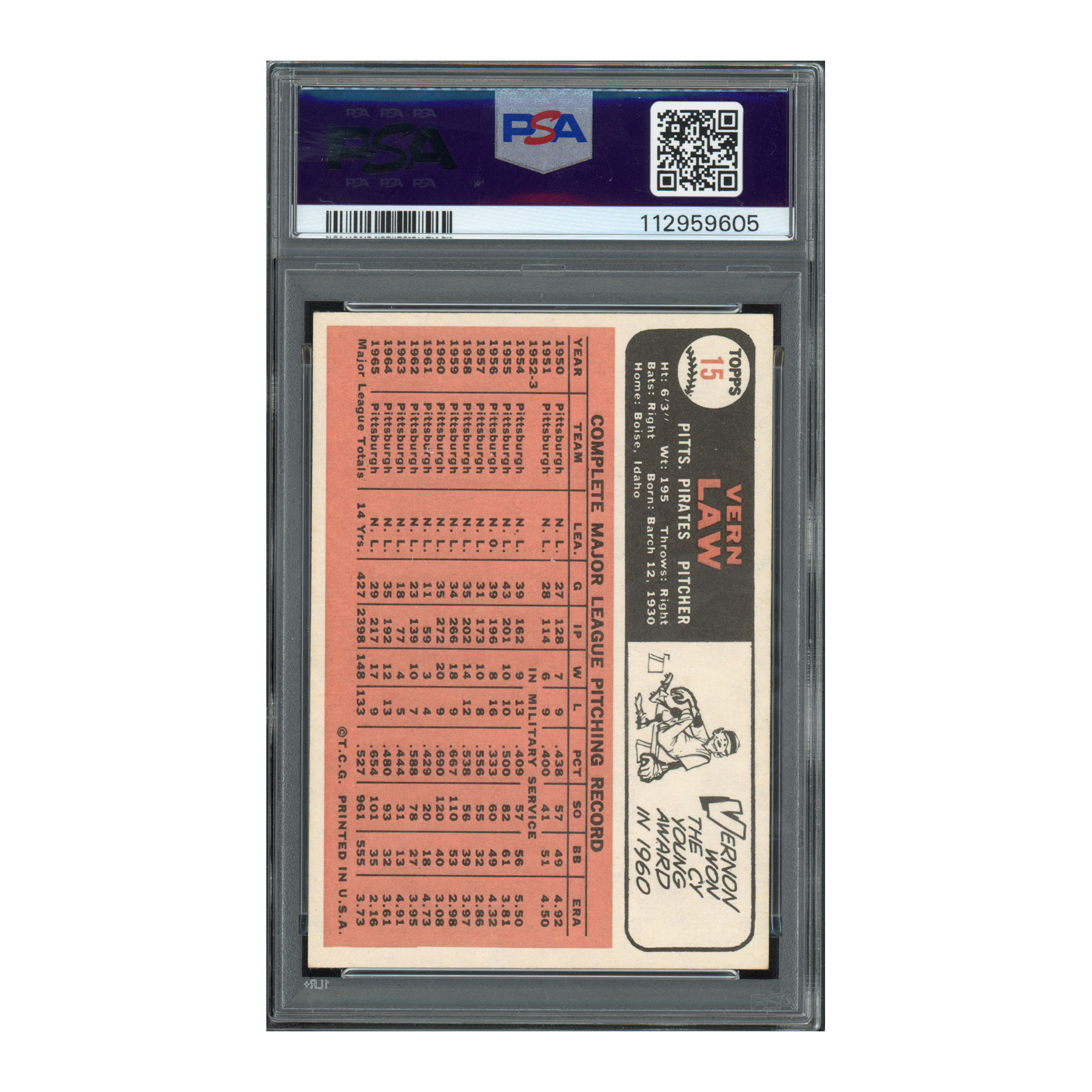 1966 Topps #15 Vern Law – Signed – PSA 8, Auto 10 – Pittsburgh Pirates – POP 1; 1 Higher