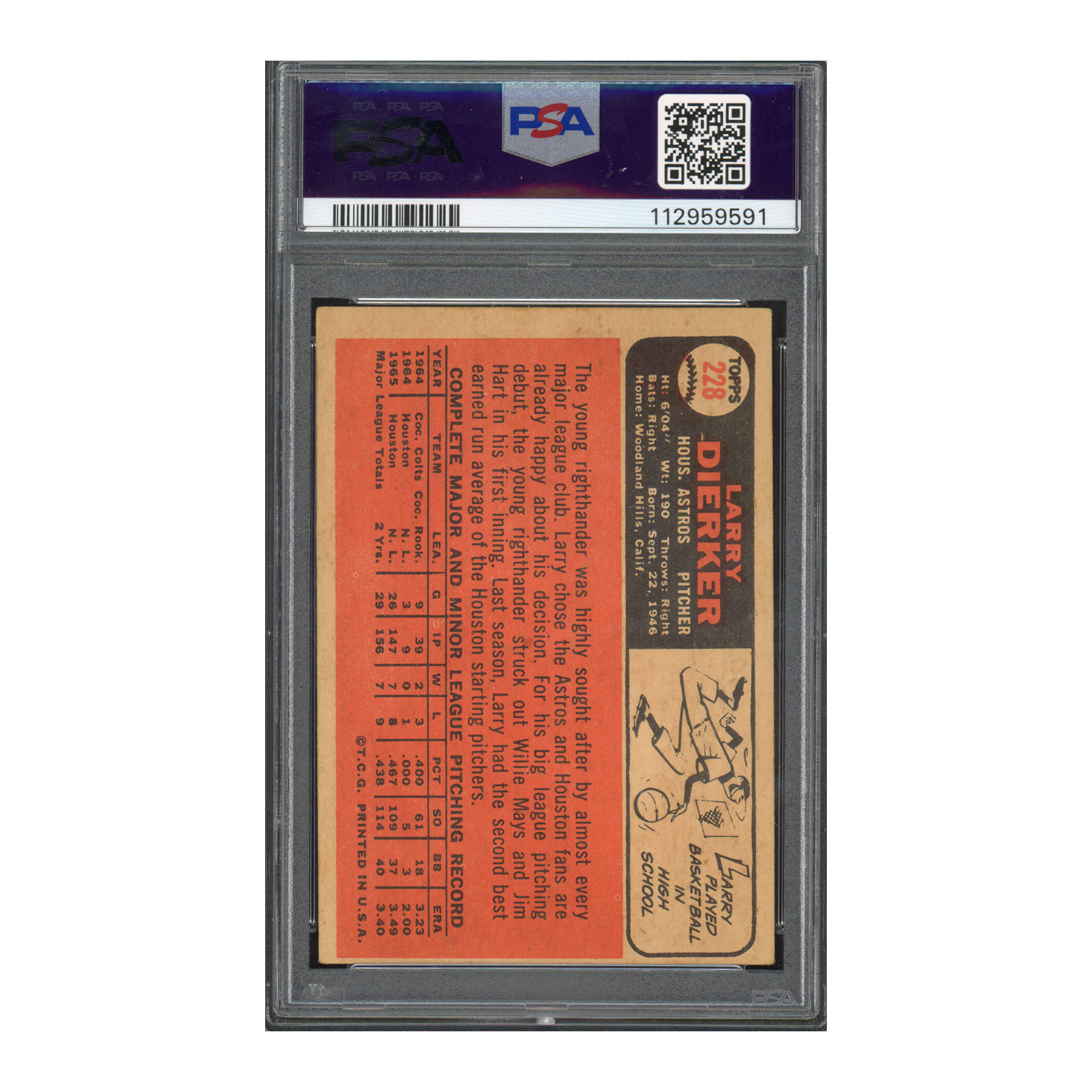 1966 Topps Venezuelan #228 Larry Dierker – Signed – PSA 3, Auto 9 – POP 1; None Higher