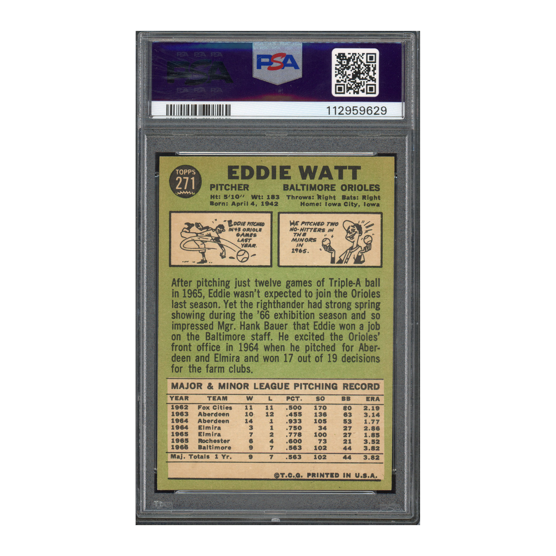 1967 Topps #271 Ed Watt – Signed – PSA 8, Auto 10 – Baltimore Orioles – POP 1; None Higher