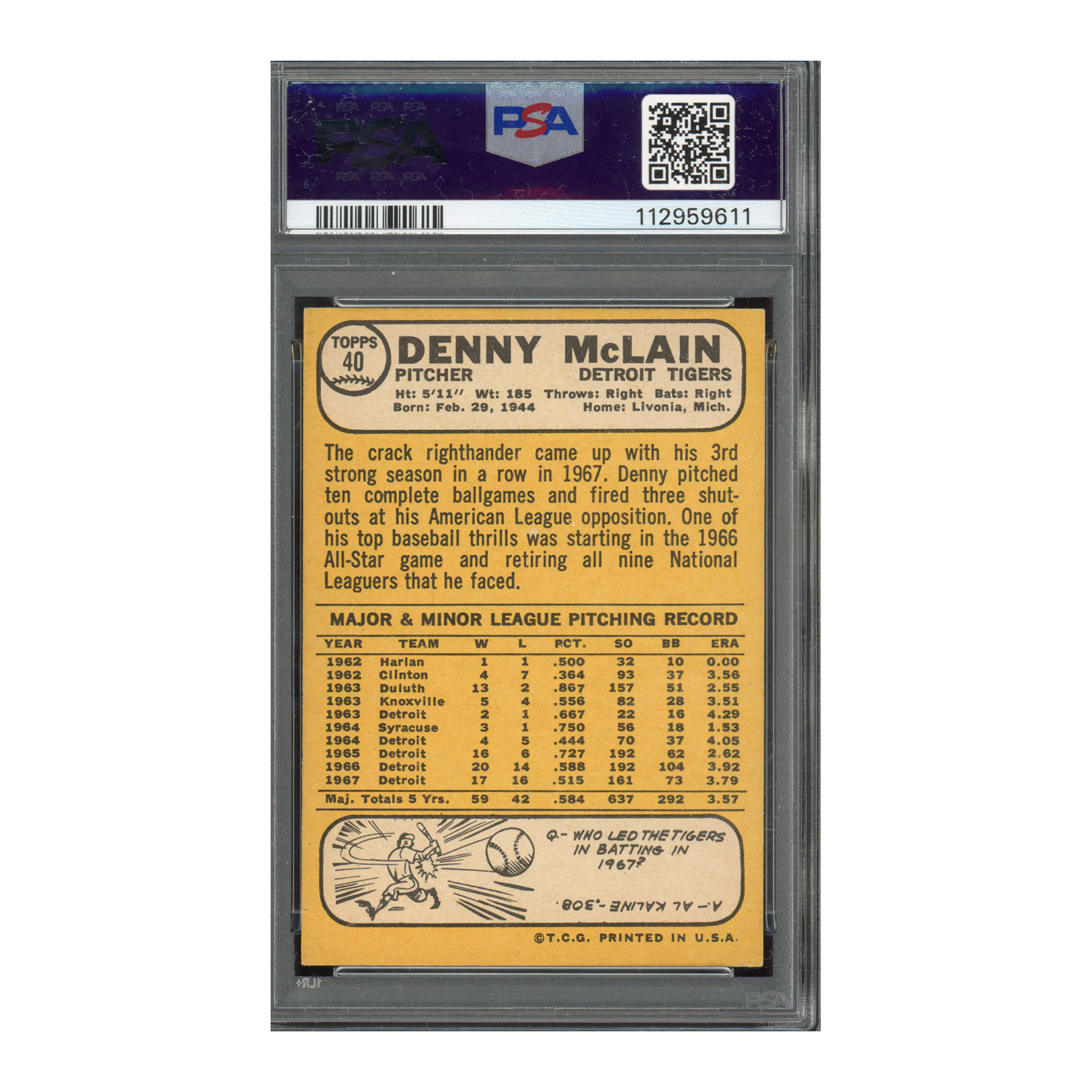 1968 Topps #40 Dennis “Denny” McLain – Signed – PSA 7, Auto 10 – POP 4; One Higher