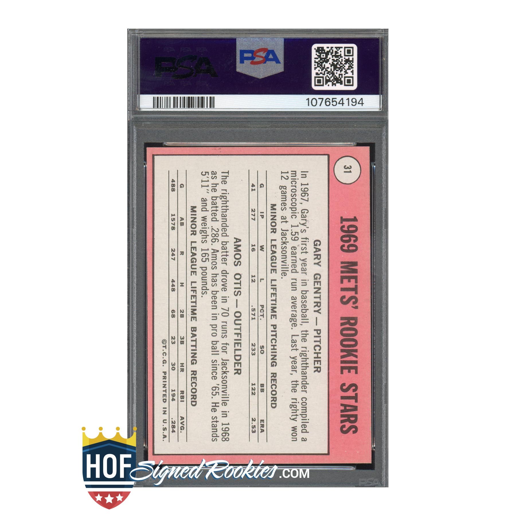 1969 Topps #31 Mets Rookies (featuring Amos Otis) – PSA 8 Auto 10 – Rookie Autograph