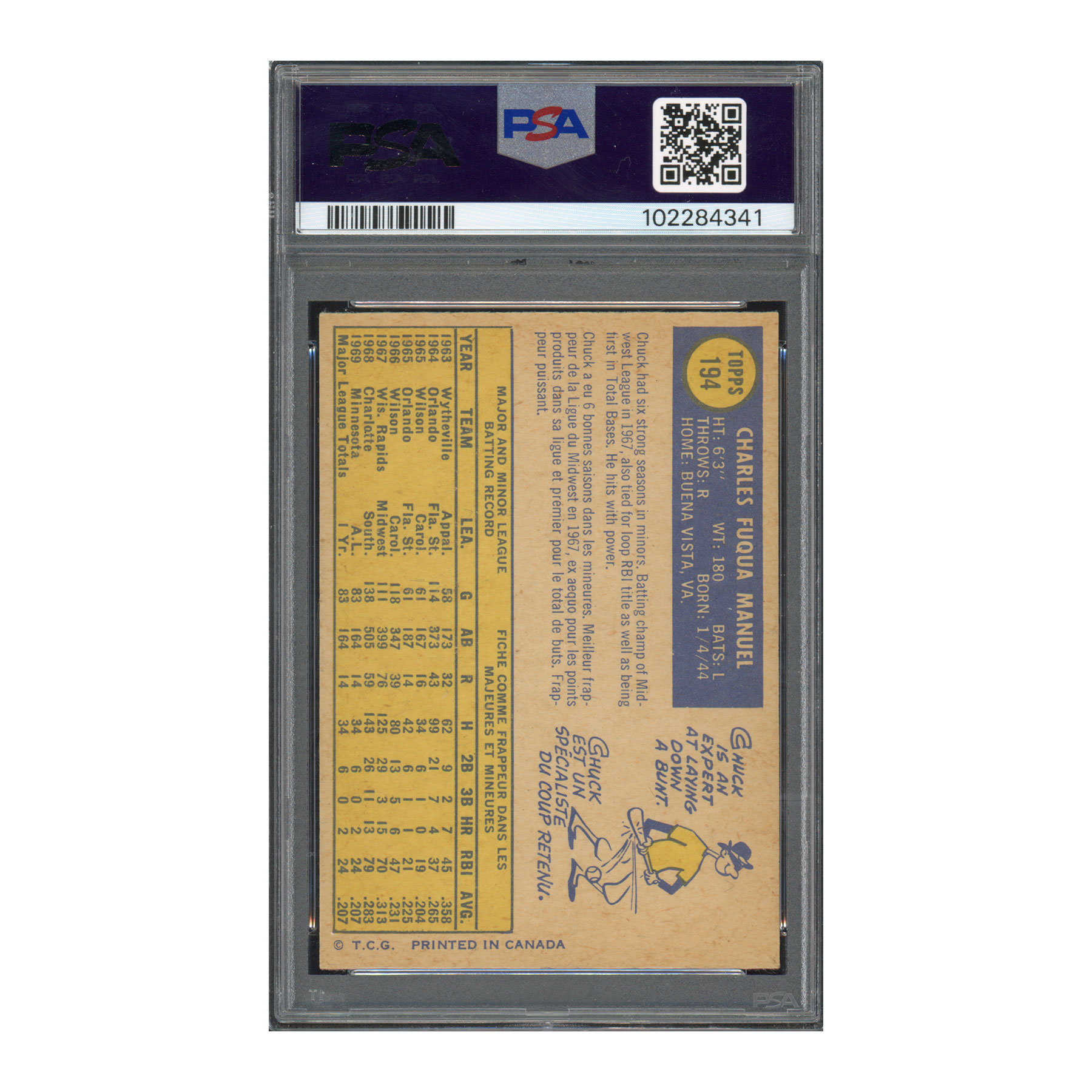 1970 Topps #194 Charlie Manuel PSA 7 Auto 10 HOF Signed RC Rookie Autograph