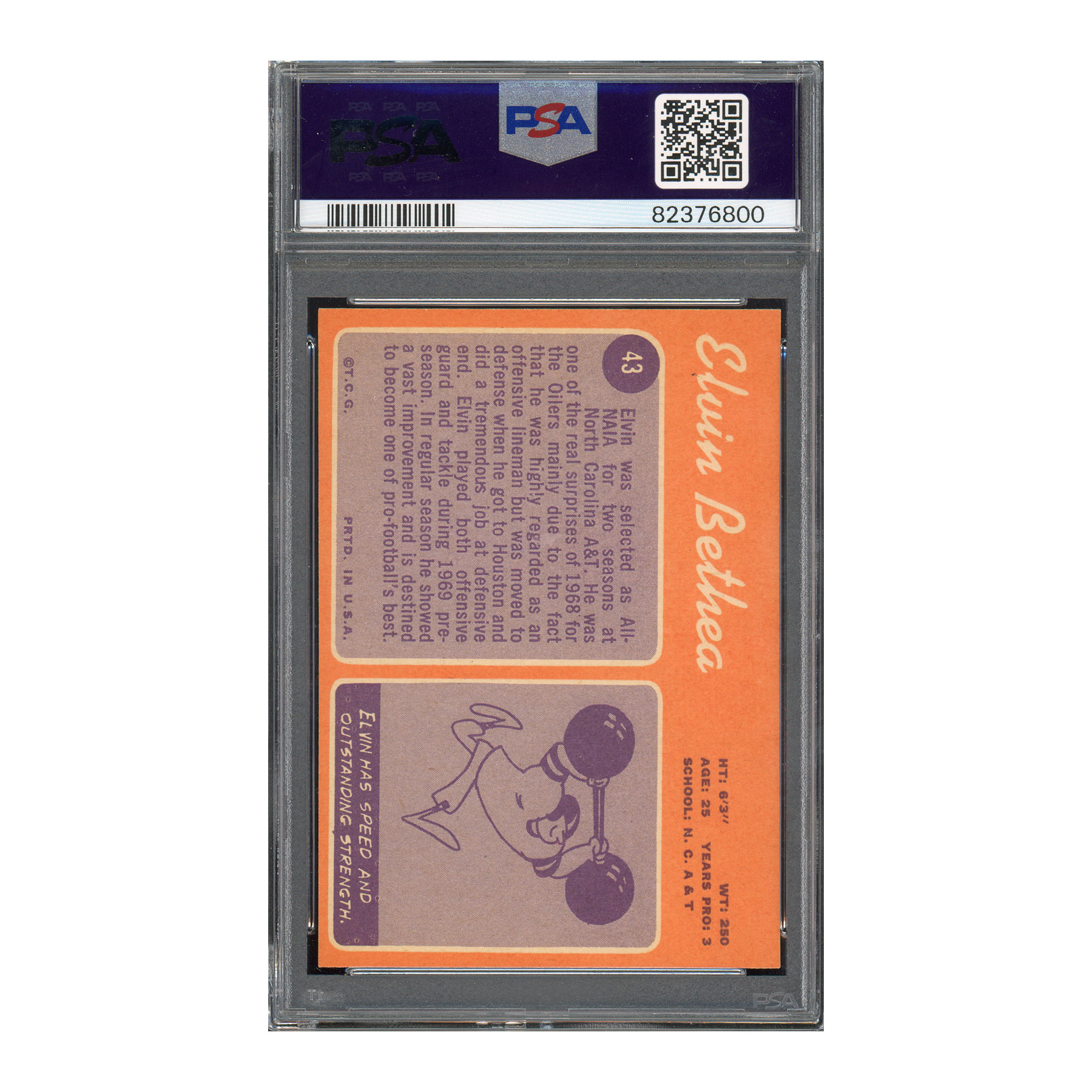 Add a legendary piece of NFL history to your collection with this 1970 Topps Elvin Bethea rookie card, graded PSA 7 (NM) and featuring a PSA Auto 10 (Gem Mint) signature. Elvin Bethea, a Hall of Fame defensive lineman for the Houston Oilers (later the Tennessee Titans), was renowned for his relentless pass rush and leadership on the field. Bethea was a key figure in the Oilers’ defense and earned numerous accolades, including his induction into the Pro Football Hall of Fame in 2003.