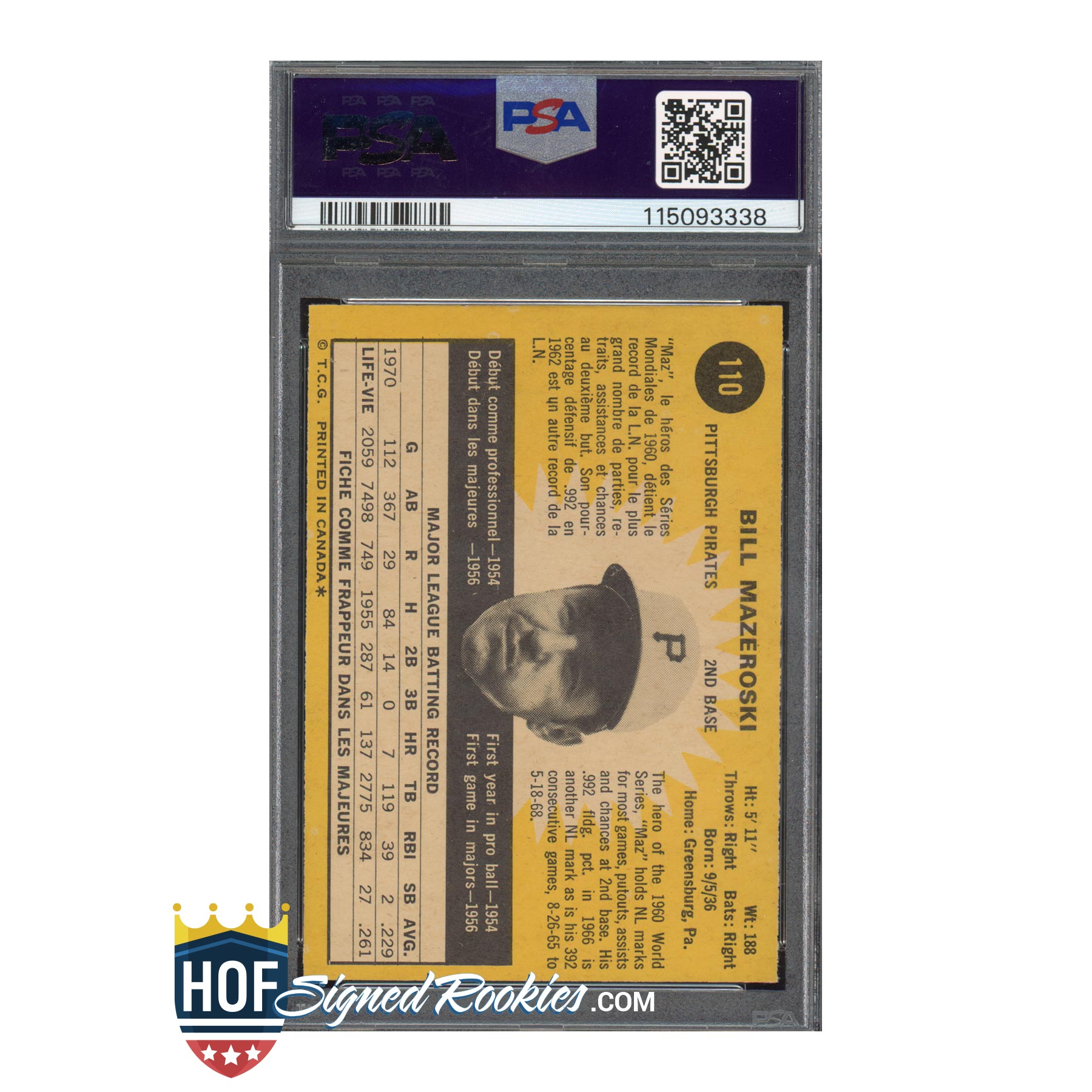 1971 OPC O-Pee-Chee #110 Bill Mazeroski – PSA 6 Auto 10 – Hall of Famer Signed Autograph