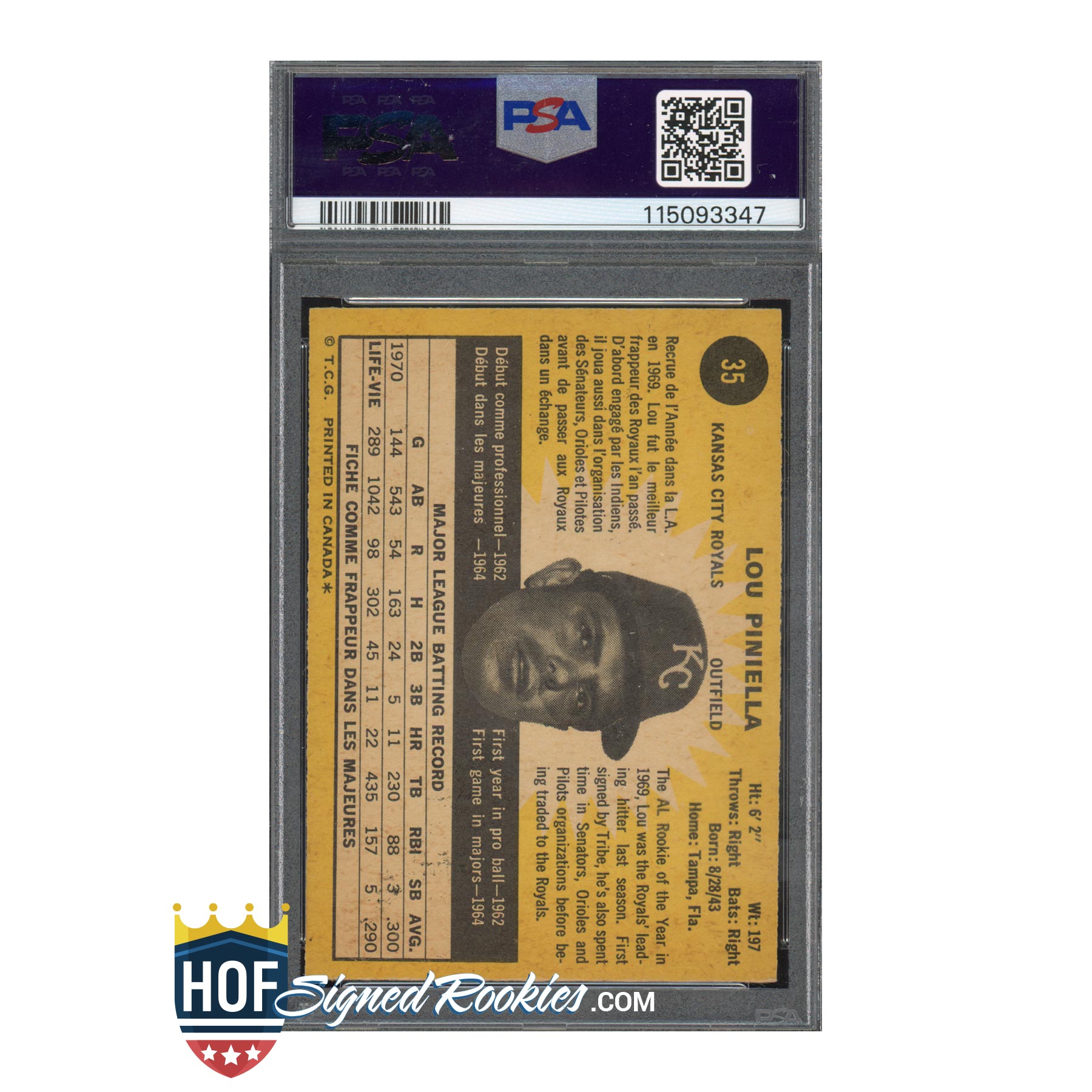 1971 OPC O-Pee-Chee #35 Lou Piniella – PSA 6 Auto 10 – Hall of Fame Signed Autograph