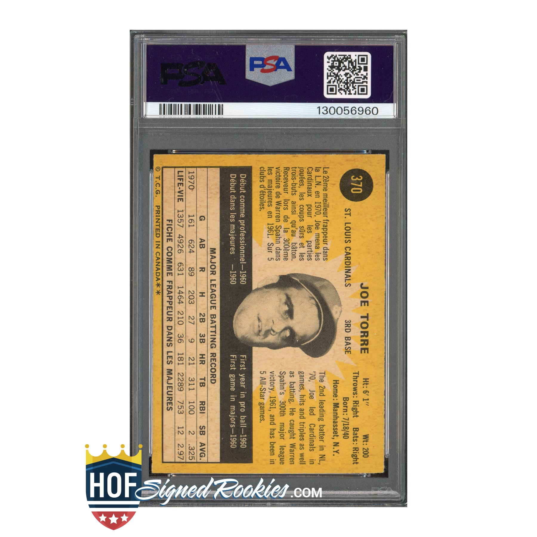 1971 O-Pee-Chee #370 Joe Torre – PSA 5 Auto 10 – HOF Signed Autograph – Pop 1 (0 Higher)