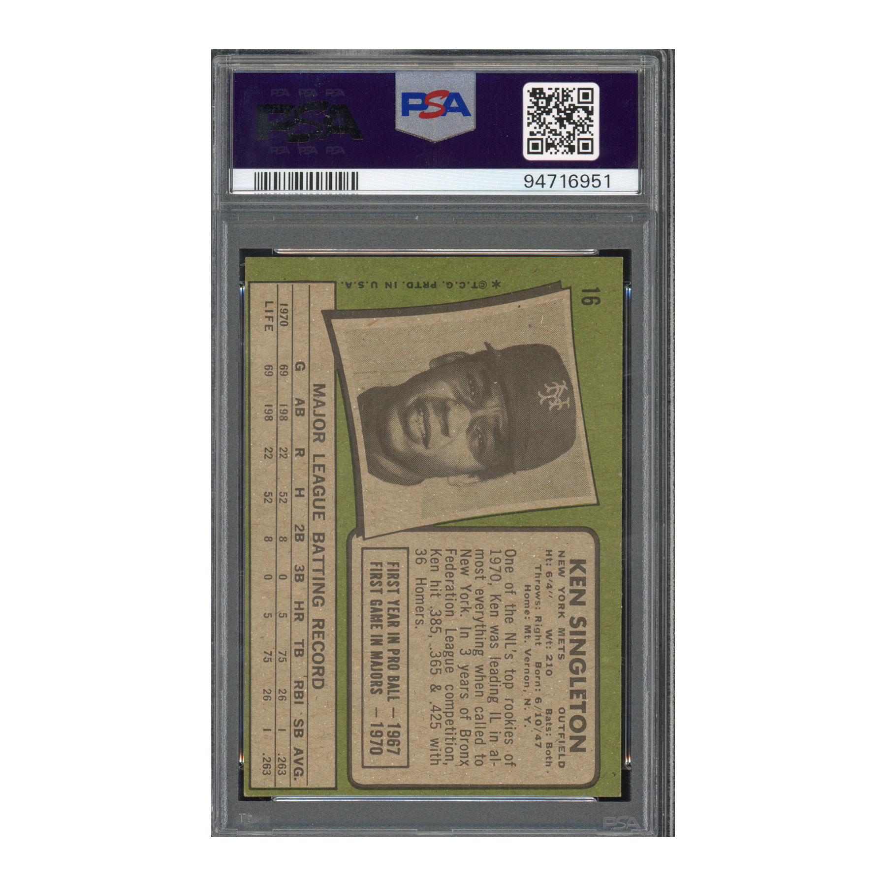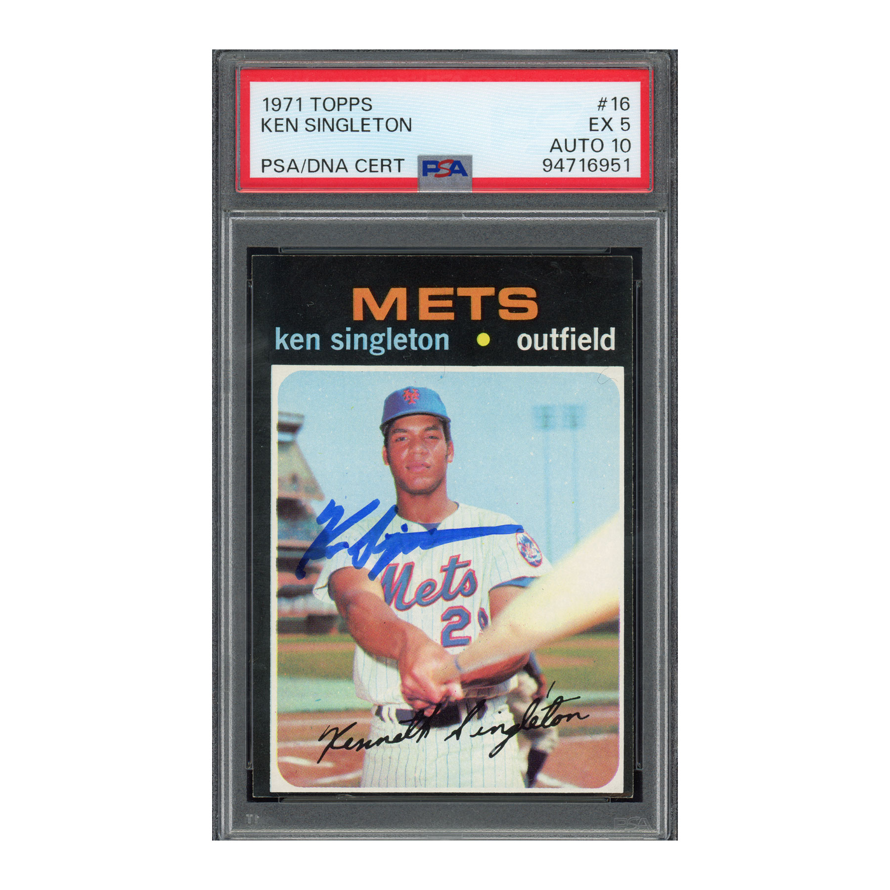 1971 Topps #16 Ken Singleton PSA 5 Auto 10