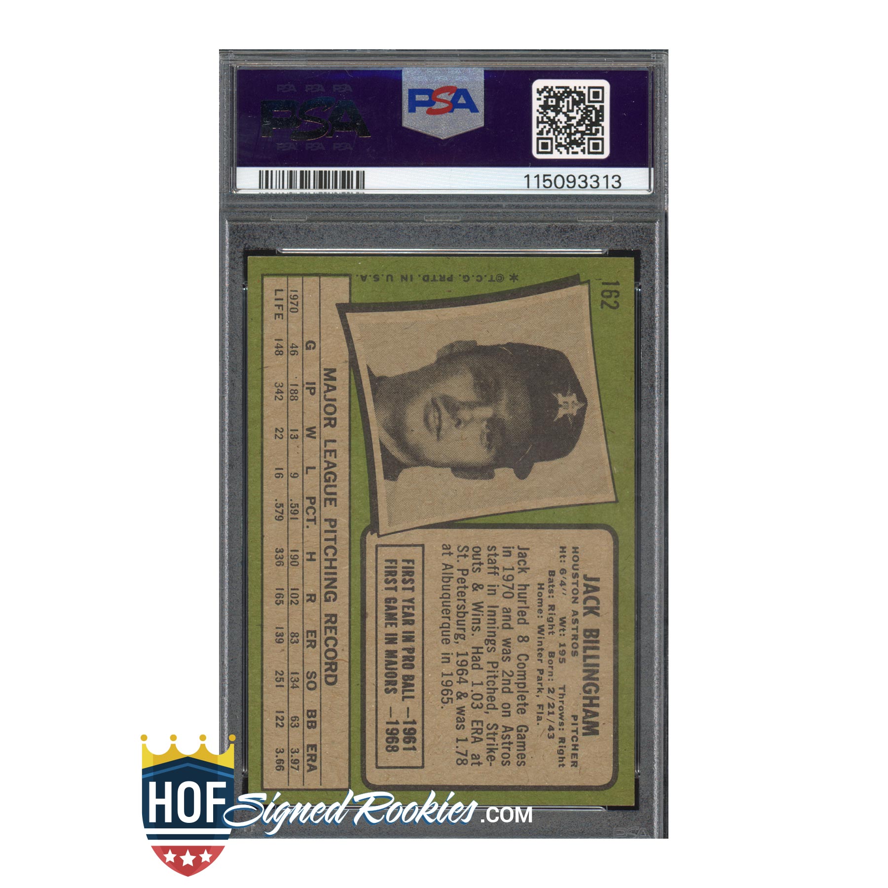 1971 Topps #162 Jack Billingham – PSA 7 Auto 10 – Signed Autograph