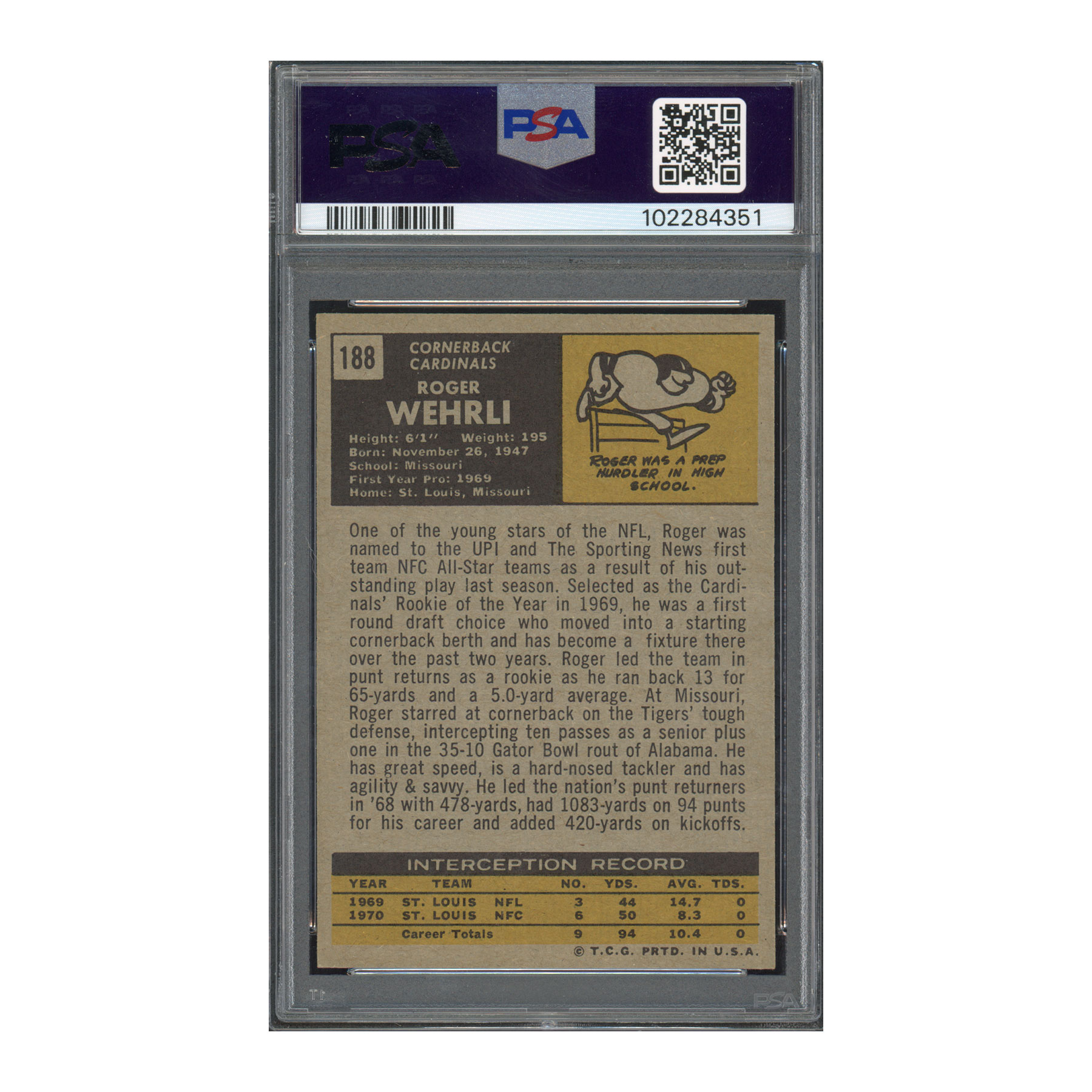 1971 Topps #188 Roger Wehrli PSA 5 Auto 10 HOF Signed RC Rookie Autograph