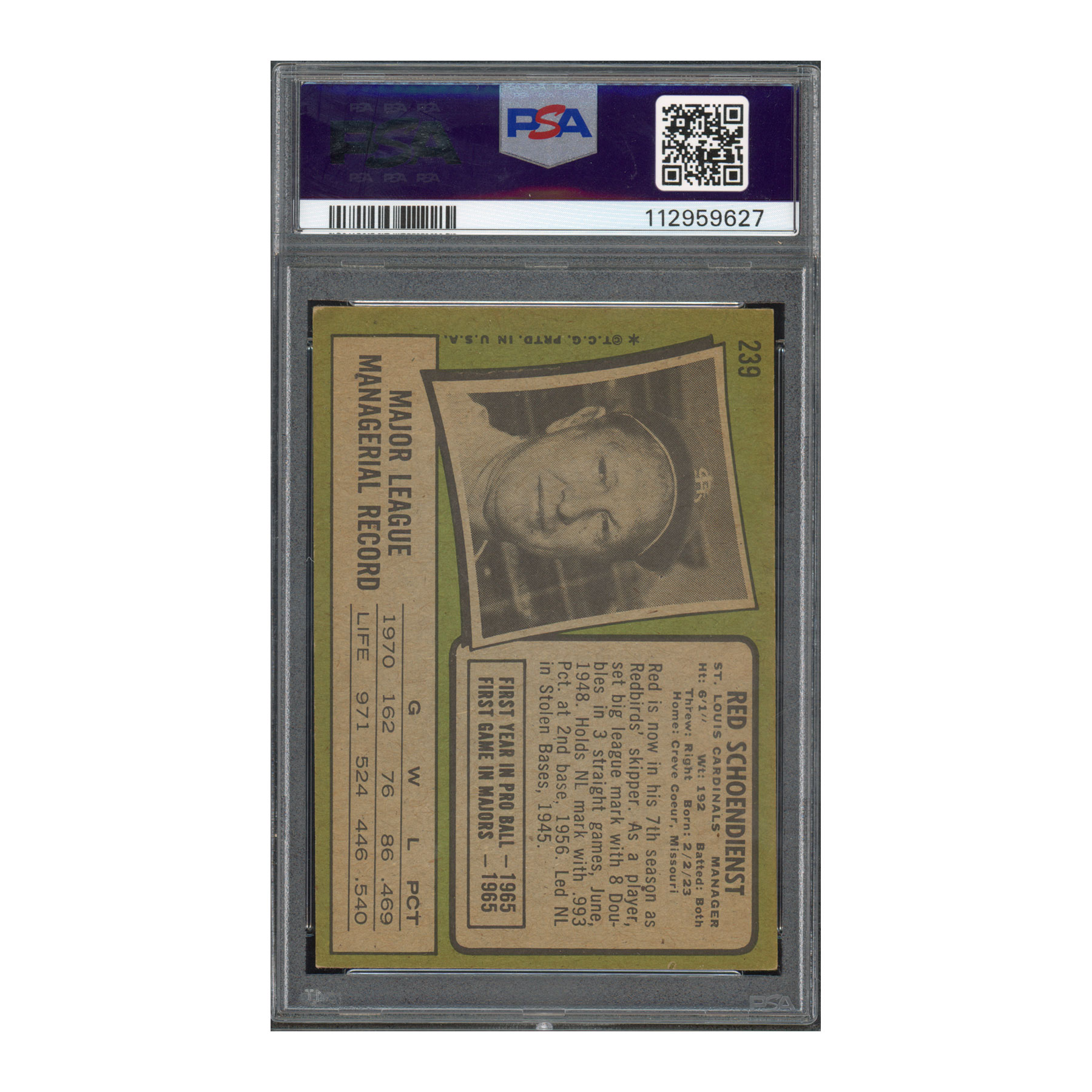 1971 Topps #229 Red Schoendienst – Signed – PSA 5, Auto 10 – Hall of Famer – POP 1; None Higher