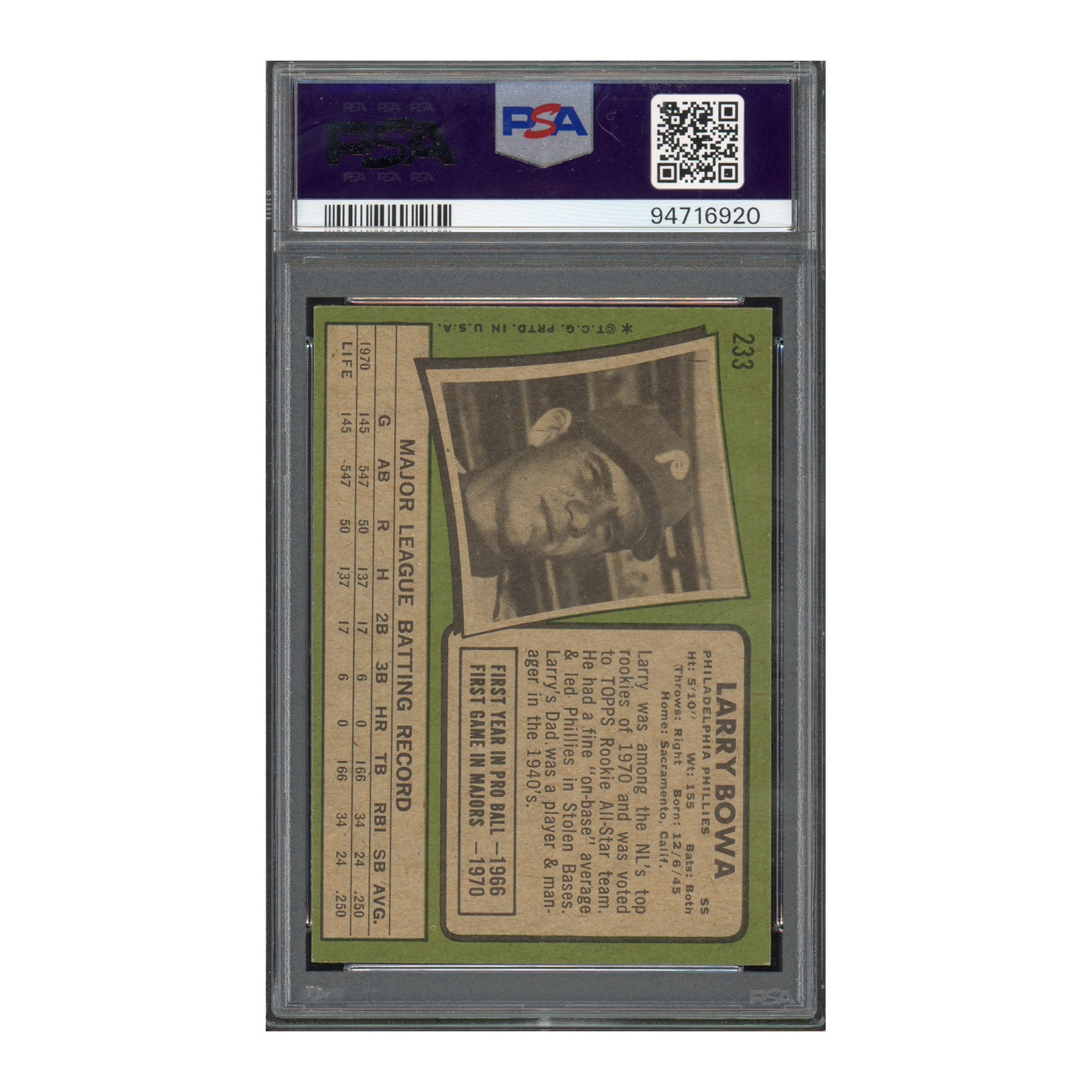 1971 Topps #233 Larry Bowa – PSA 7 NM – Autographed – Rookie Card
