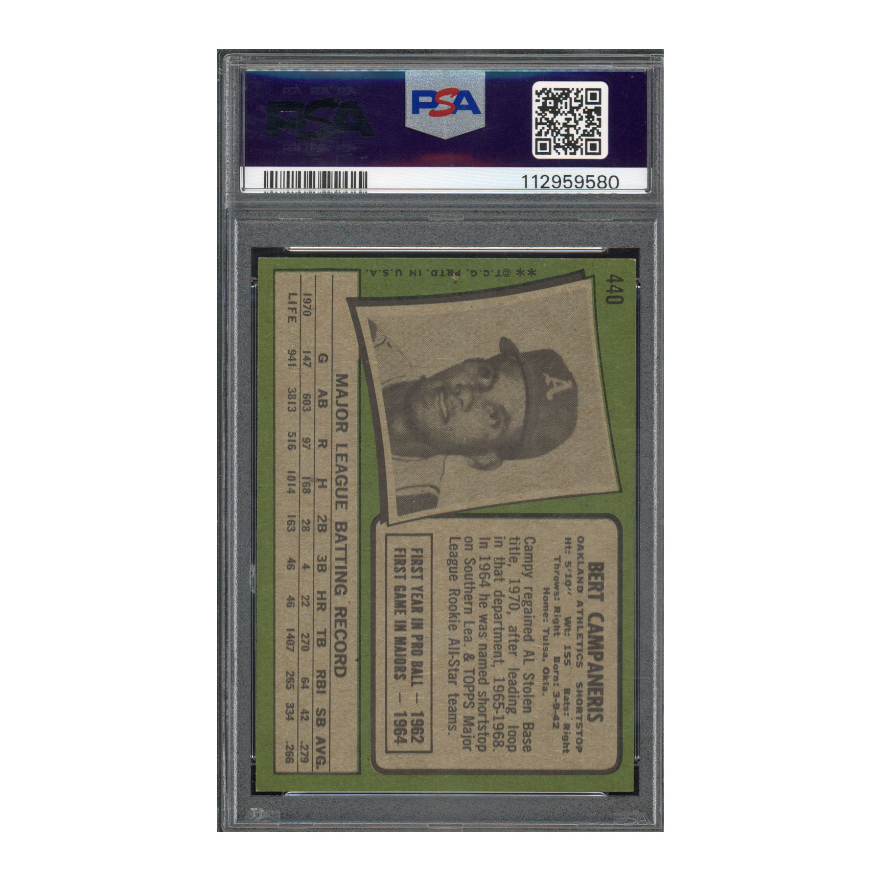 1971 Topps #440 Bert Campaneris – Signed – PSA 6.5, Auto 10 – Oakland Athletics – POP 1; None Higher