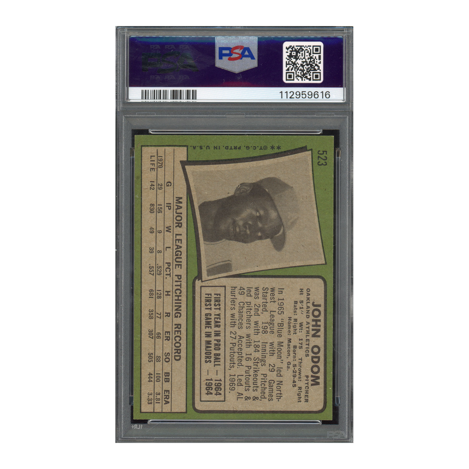 1971 Topps #523 John Odom – Signed – PSA 8, Auto 10 – Oakland Athletics – POP 1; None Higher