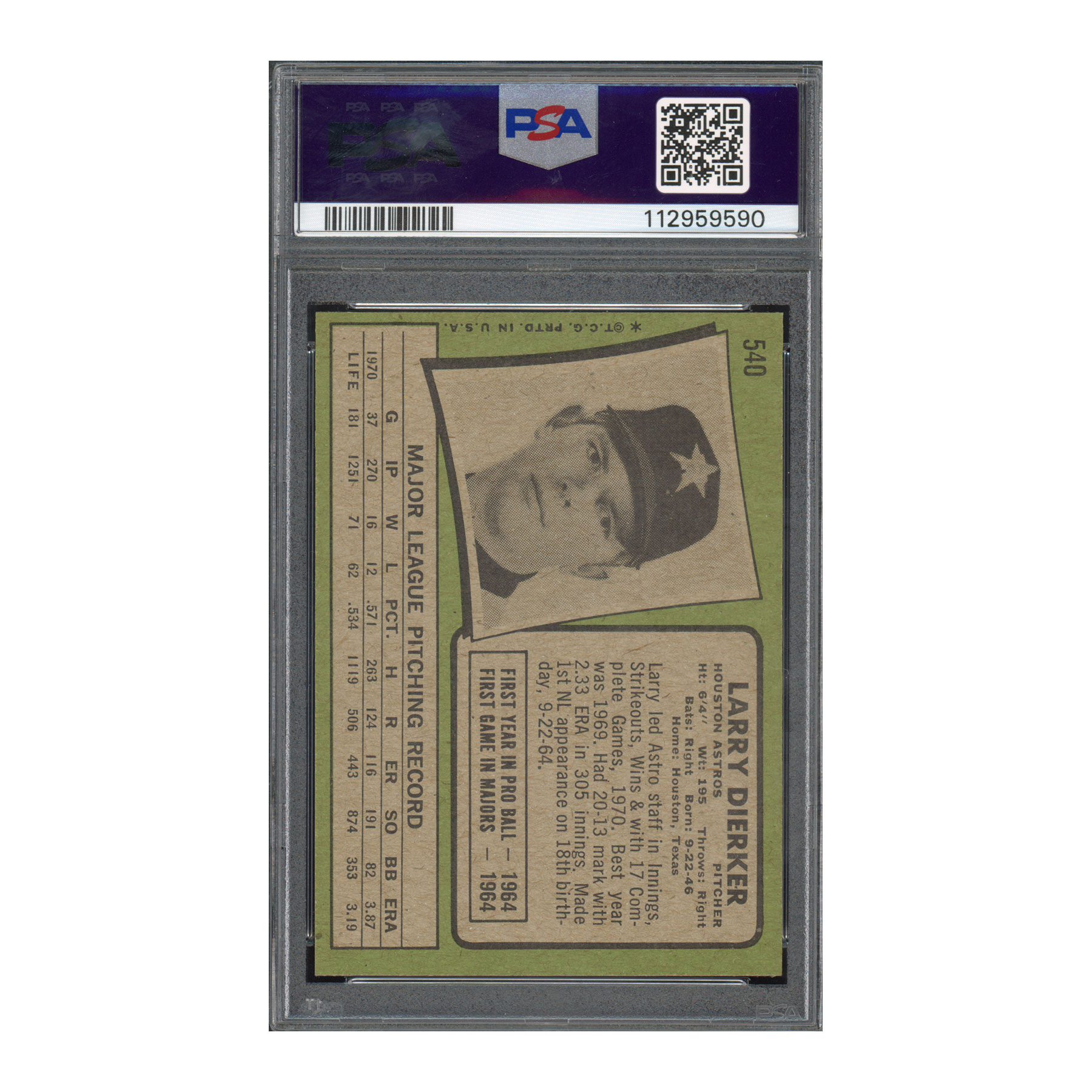 1971 Topps #540 Larry Dierker – Signed – PSA 8, Auto 10 – Houston Astros – POP 1; None Higher