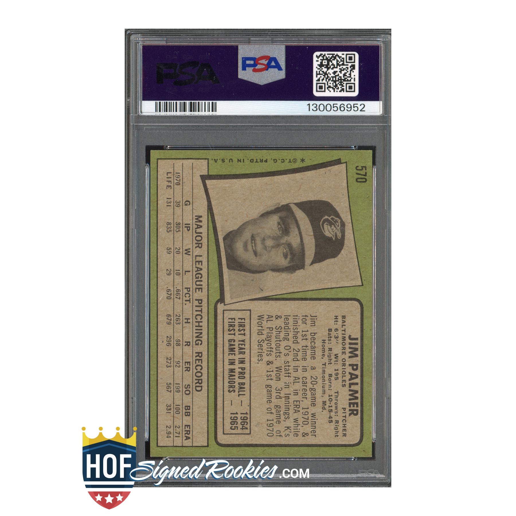 1971 Topps #570 Jim Palmer – PSA 6 Auto 9 – HOF Signed Autograph