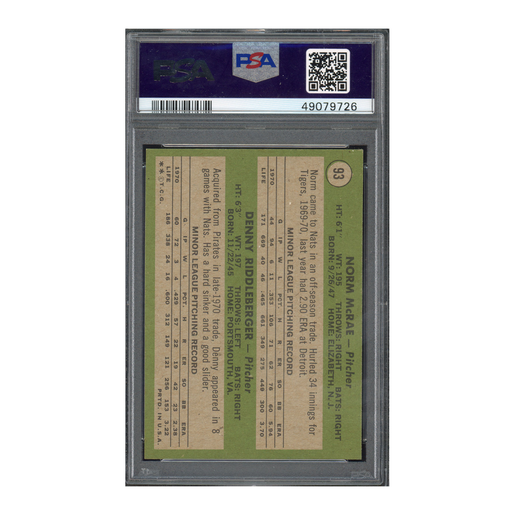 1971 Topps #93 Senators Rookie Stars – PSA 8 NM-MT – Norm McRae / Denny Riddleberger