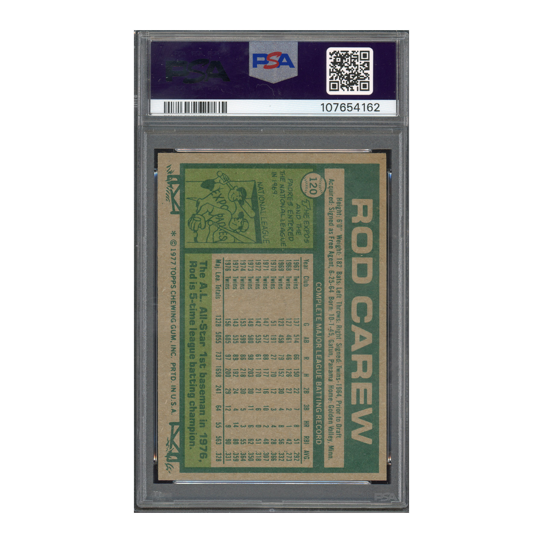 1977 Topps #120 Rod Carew – PSA 8 NM-MT – Auto 10 – HOF Signed Autograph