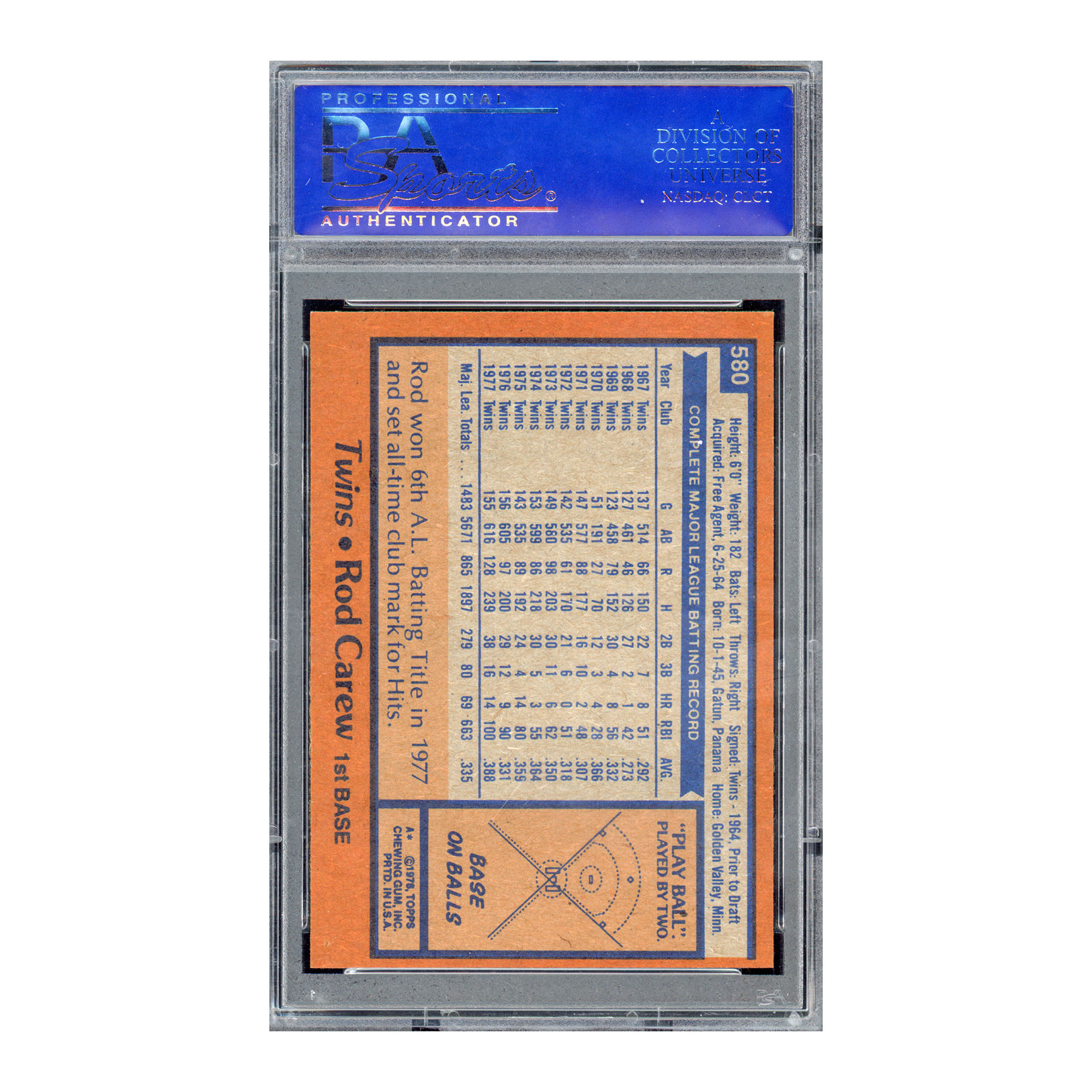 1978 Topps #580 Rod Carew – PSA 9 MINT – Twins HOF