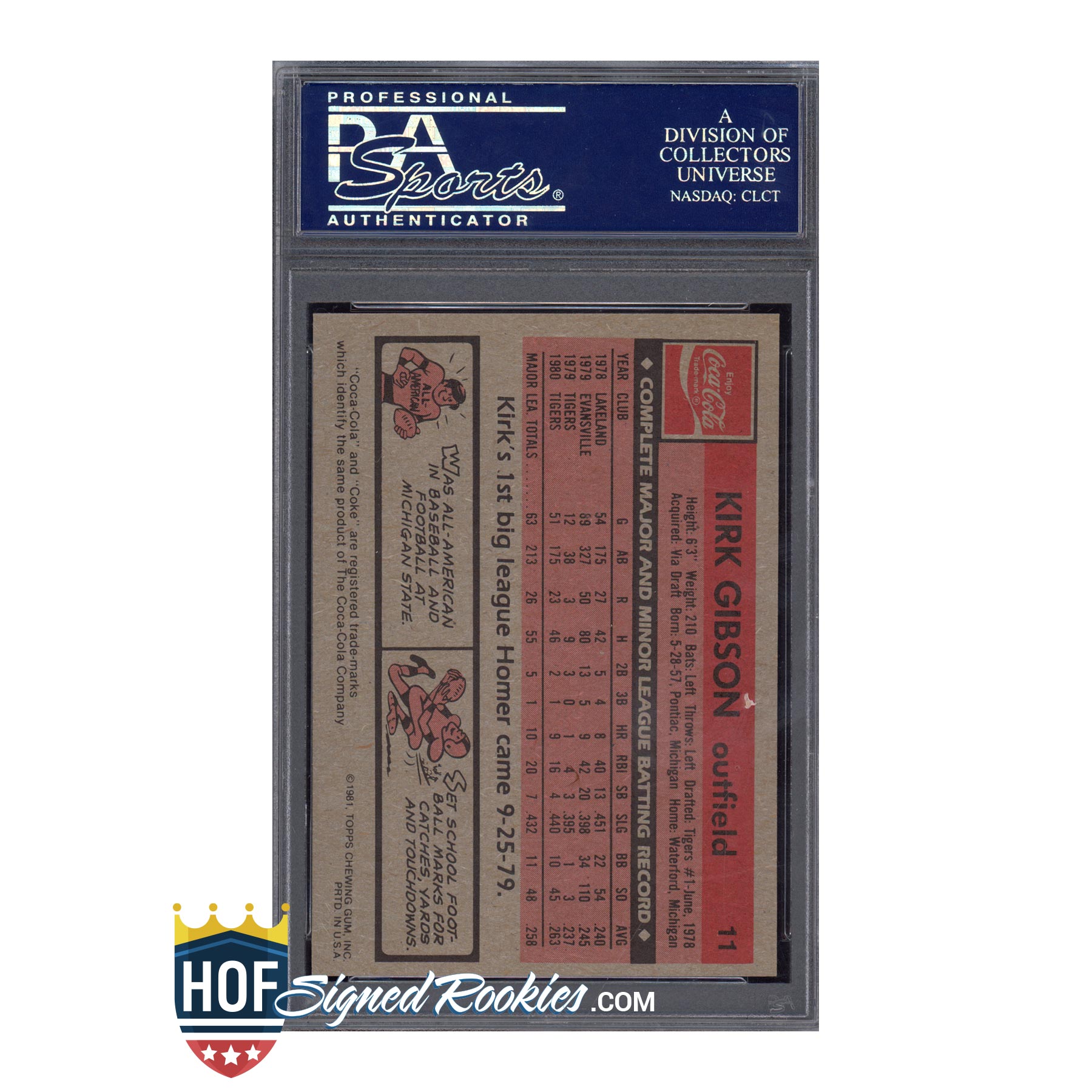 1981 Topps Coca-Cola #11 Kirk Gibson – PSA 8 NM-MT – Near Mint+ Vintage Insert