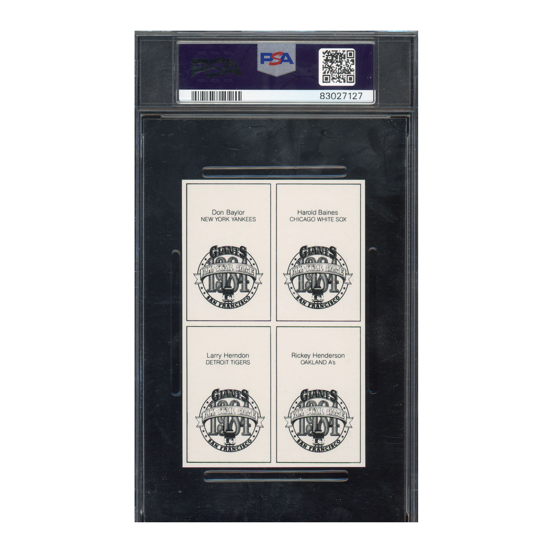 1984 All-Star Game Insert Panel – Baines, Baylor, Rickey Henderson – PSA 10 GEM MT – HOF – Pop 5