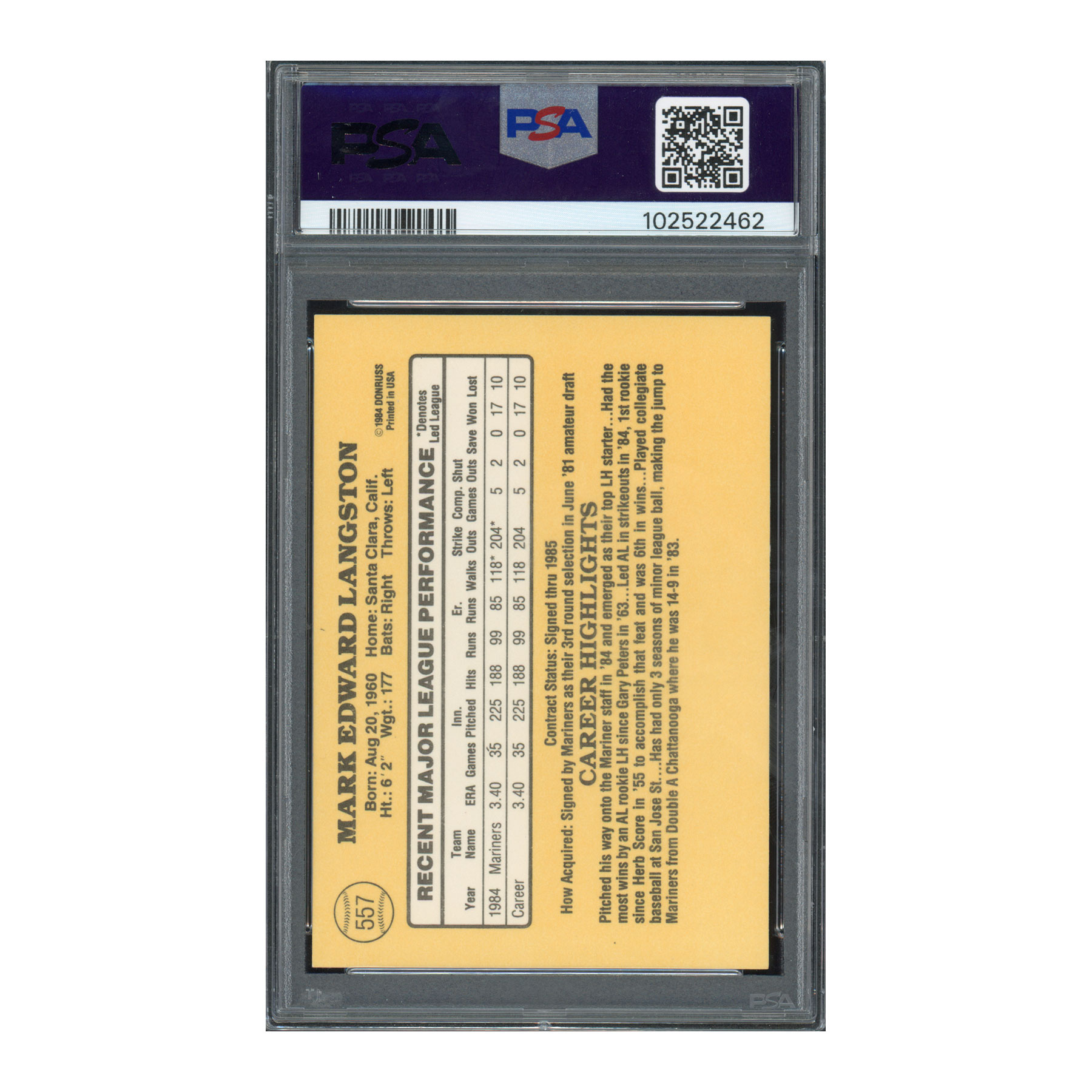 1985 Donruss #557 Mark Langston – PSA 9 MINT – Rookie Card – Autographed