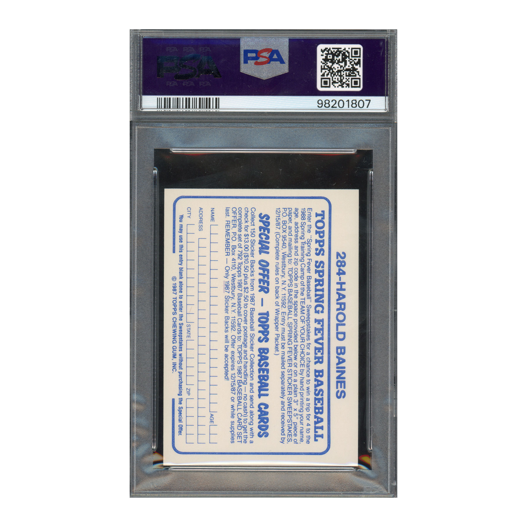 1987 Topps Stickers #284 Hardback Test Harold Baines – PSA 10 GEM MT – Hall of Famer – POP 2