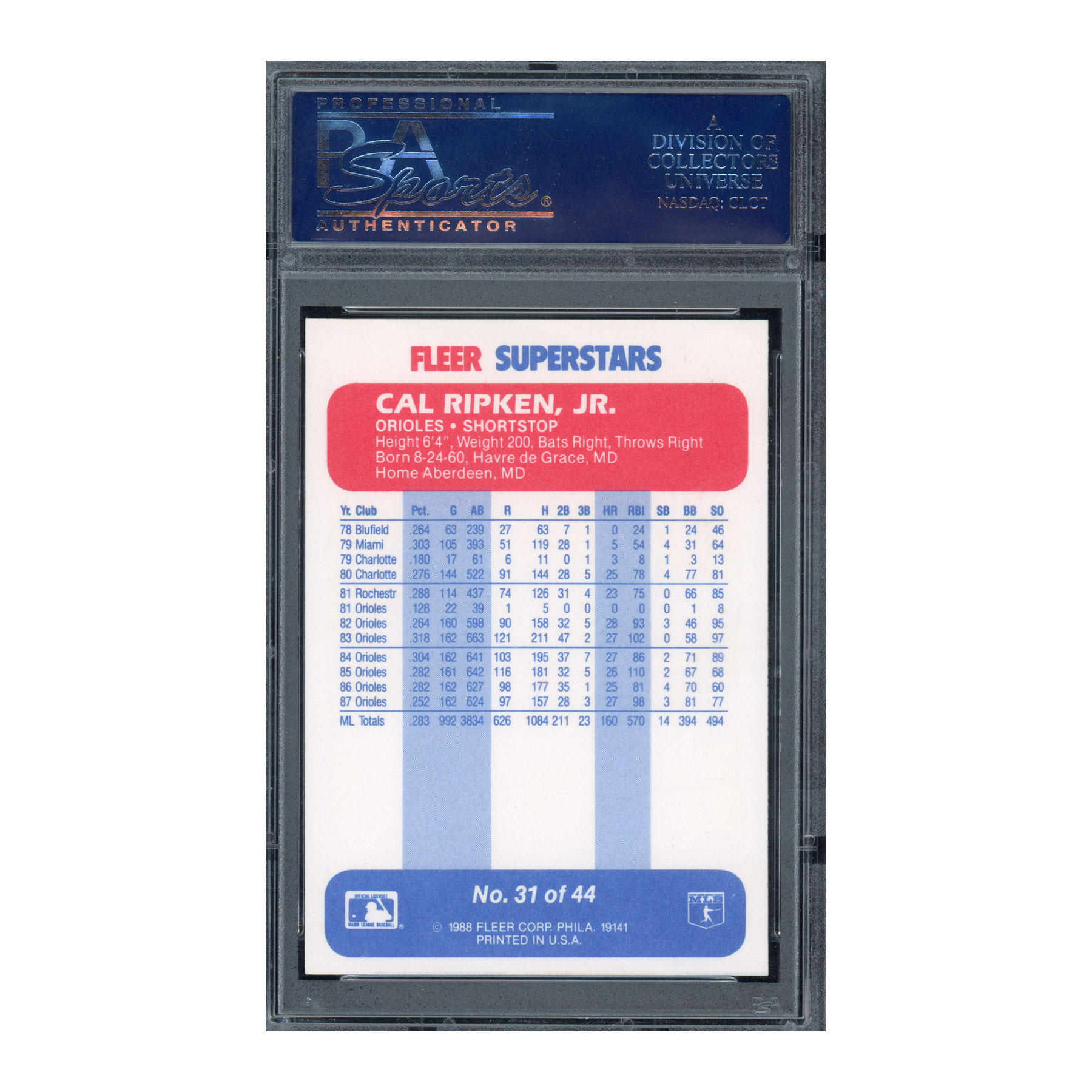 Secure this flawless 1988 Fleer Superstars Cal Ripken Jr. PSA 10 card and add a high-quality piece of baseball history to your collection!