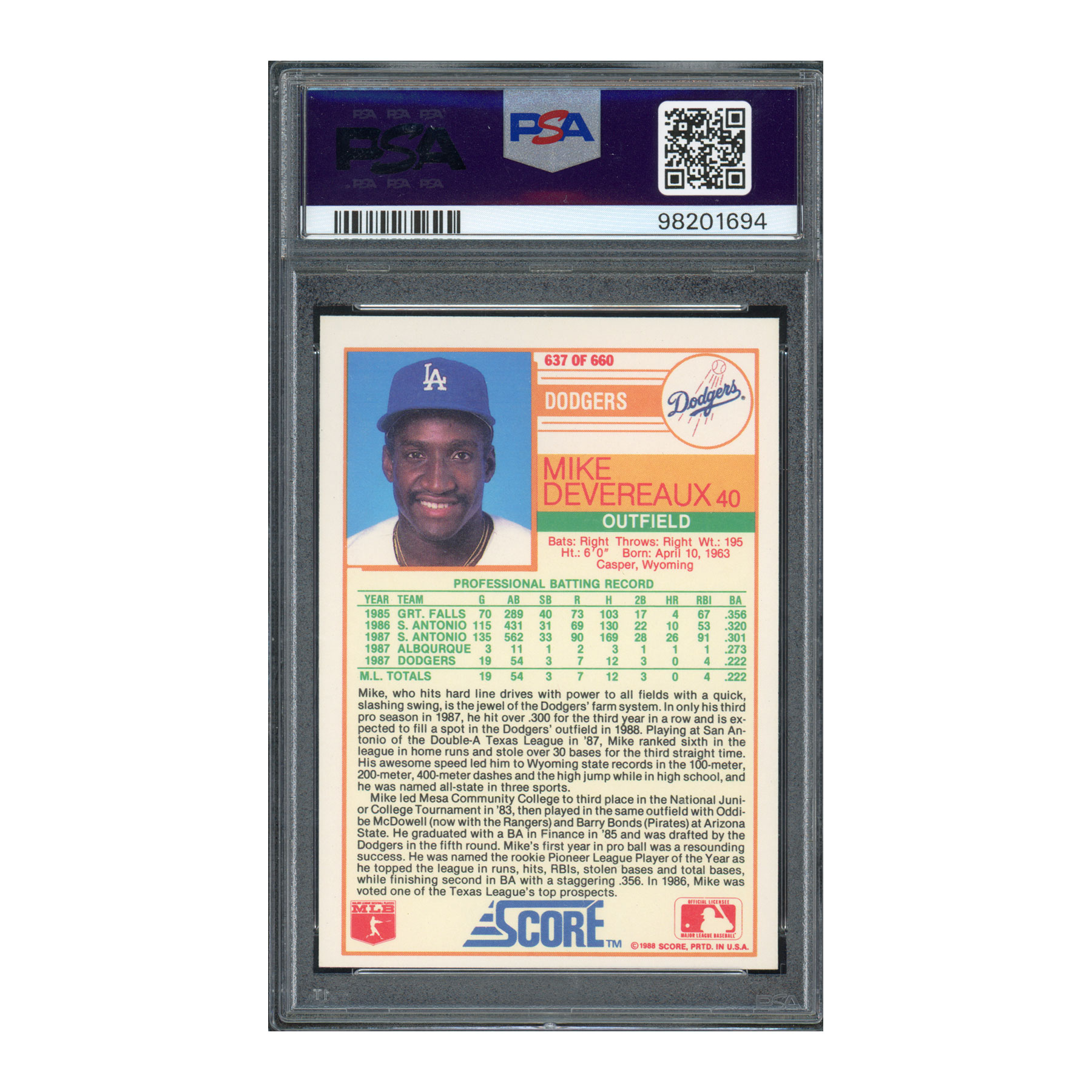 1988 Score #637 Mike Devereaux PSA 9 Auto 10 HOF Signed RC Rookie Autograph