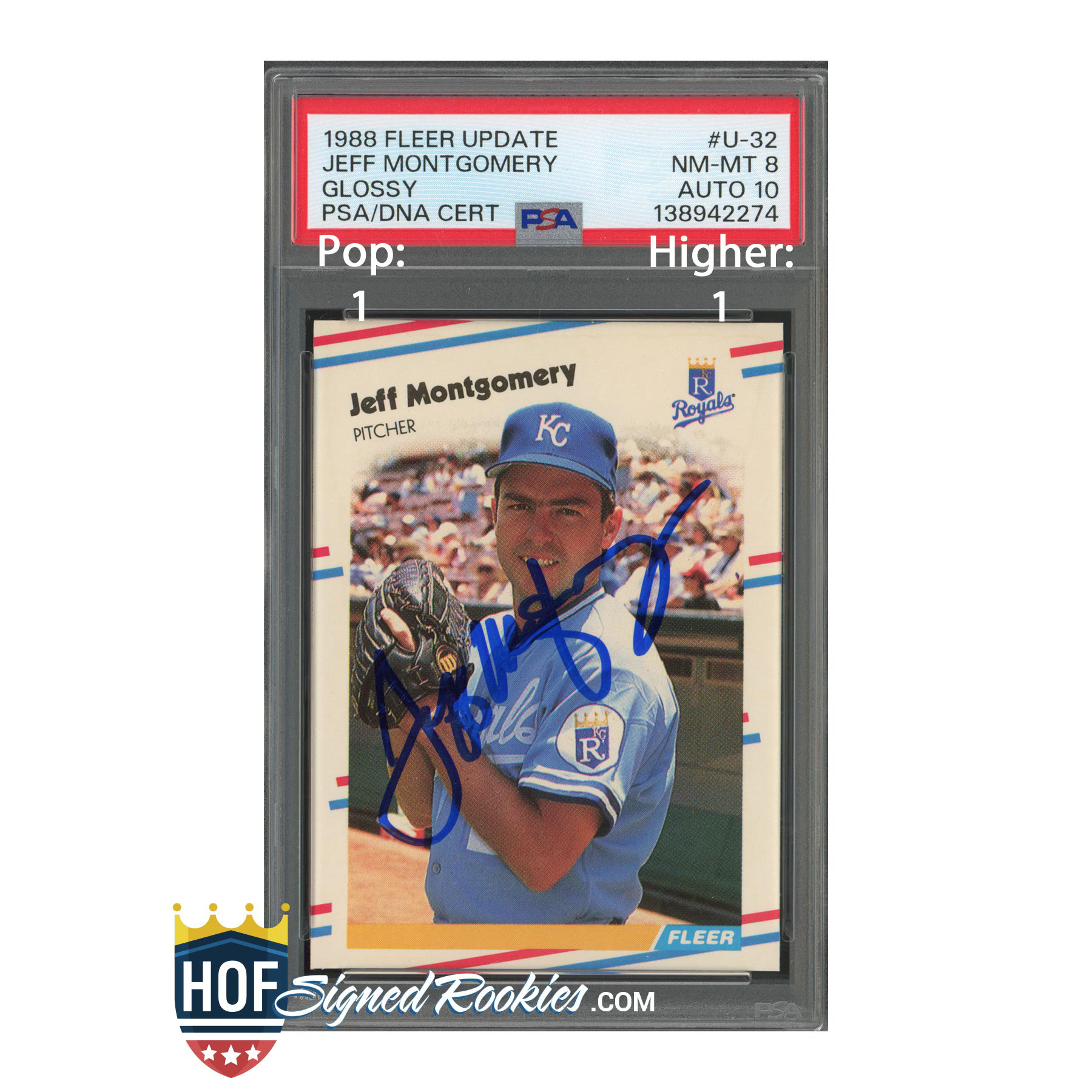 With just one example at this level and only one graded higher, this is a true low-population signed rookie from a key late-1980s traded issue — a strong addition to any PSA autograph or Royals collection. HOFSR