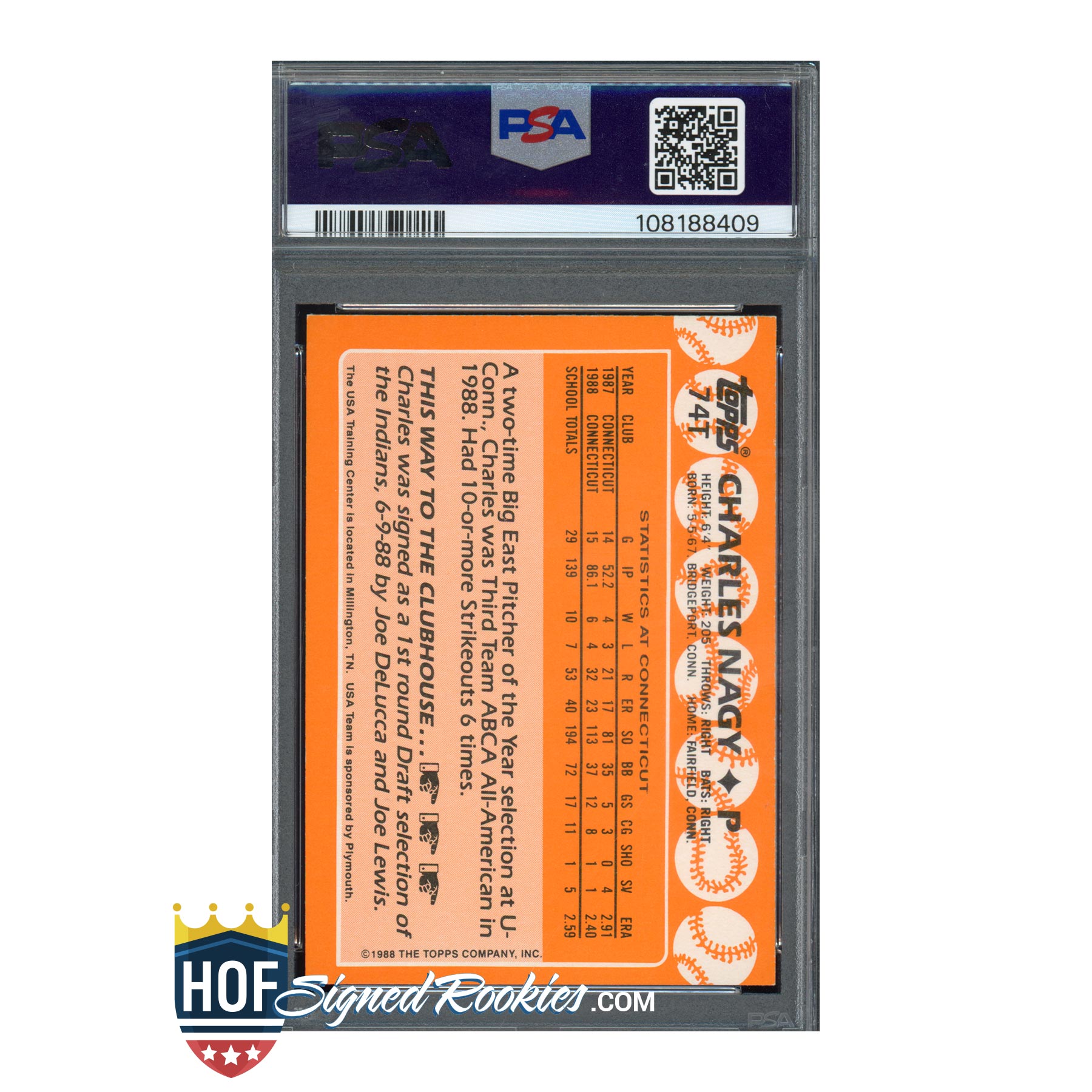 1988 Topps Traded Tiffany #74T Charles Nagy – PSA 7 / Auto 10 – Rookie Card