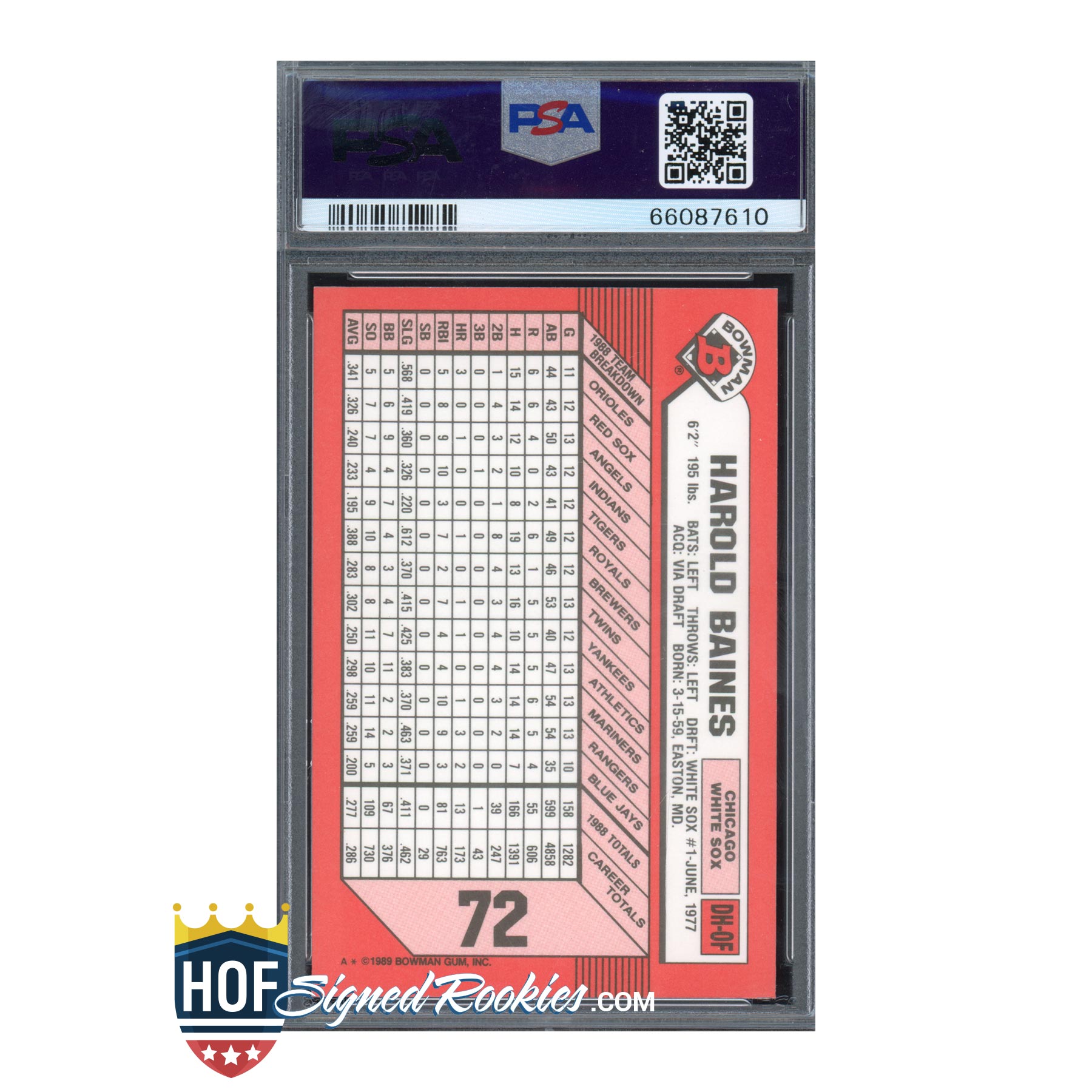 1989 Bowman Tiffany #72 Harold Baines – PSA 10 Gem Mint – HOF