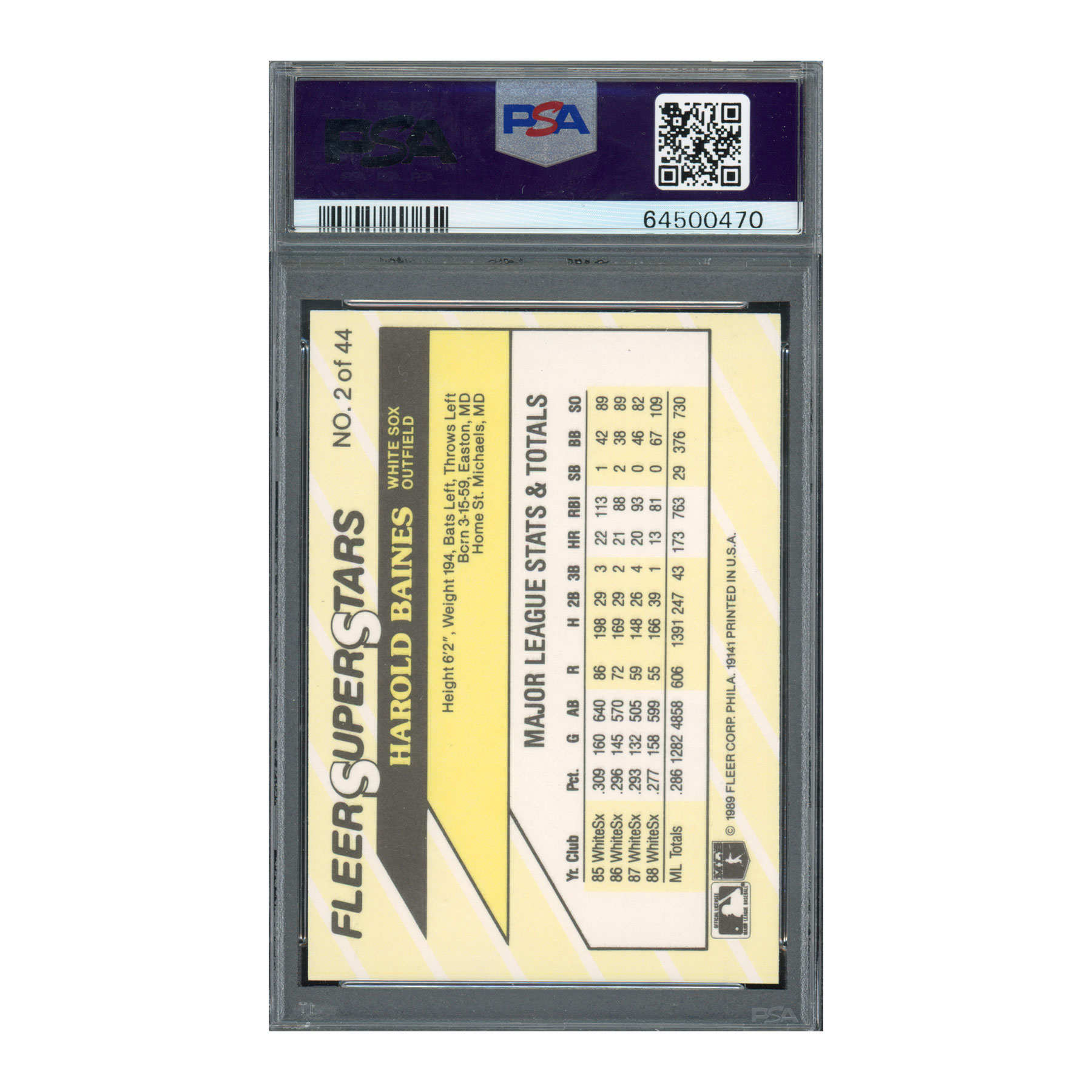 1989 Fleer Superstars #2 Harold Baines – PSA 10 GEM MT – Hall of Famer – POP 2