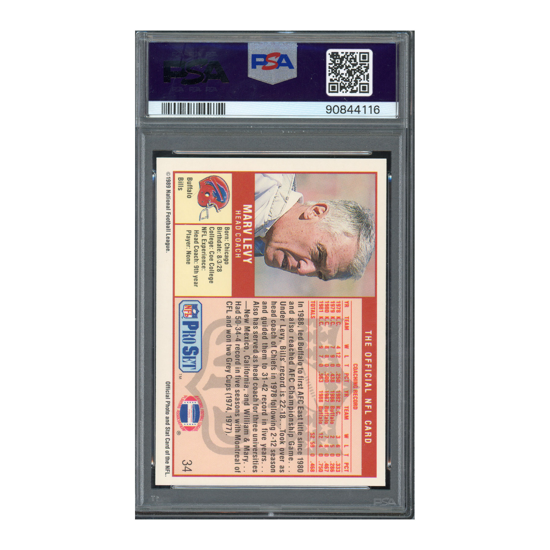 1989 Pro Set #34 Marv Levy PSA 8 Auto 10 HOF Signed Rookie Card