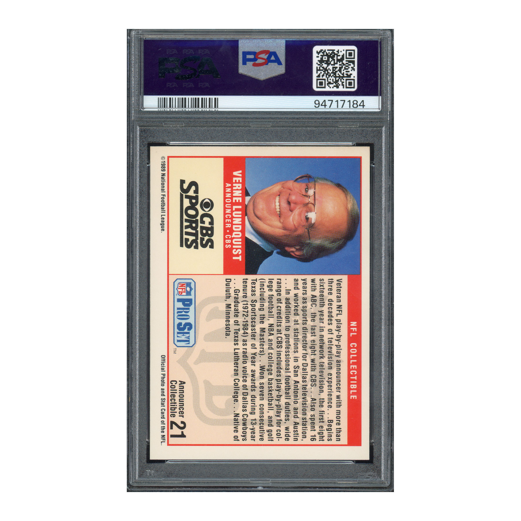 1989 Pro Set Announcers #21 Verne Lundquist – PSA 8 NM-MT – Autographed Rookie Card