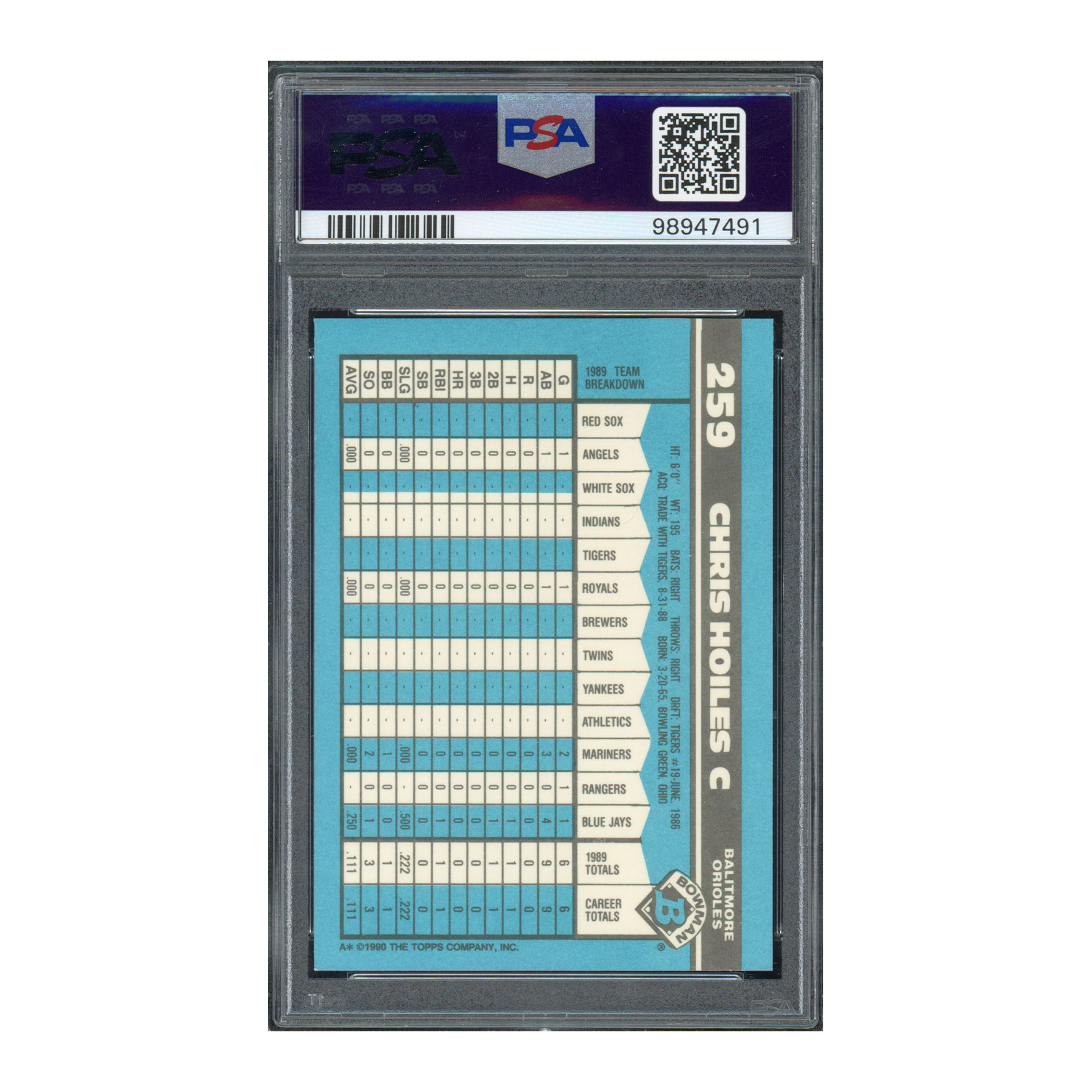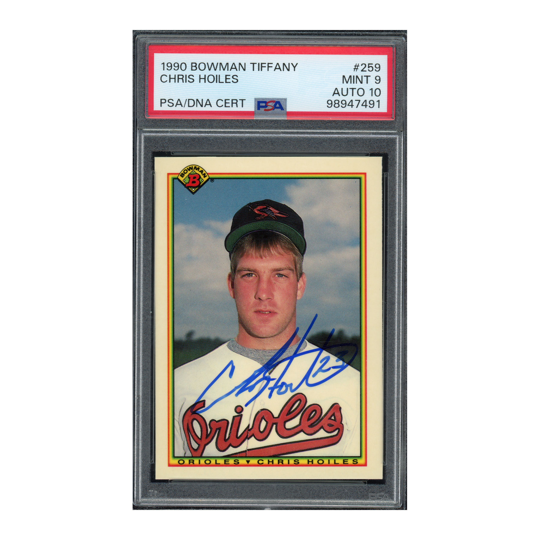 1990 Bowman Tiffany #259 Chris Hoiles PSA 9 Auto 10 RC Signed Autograph
