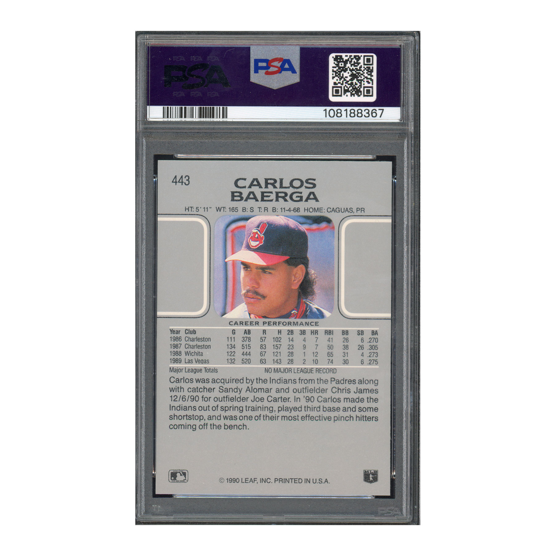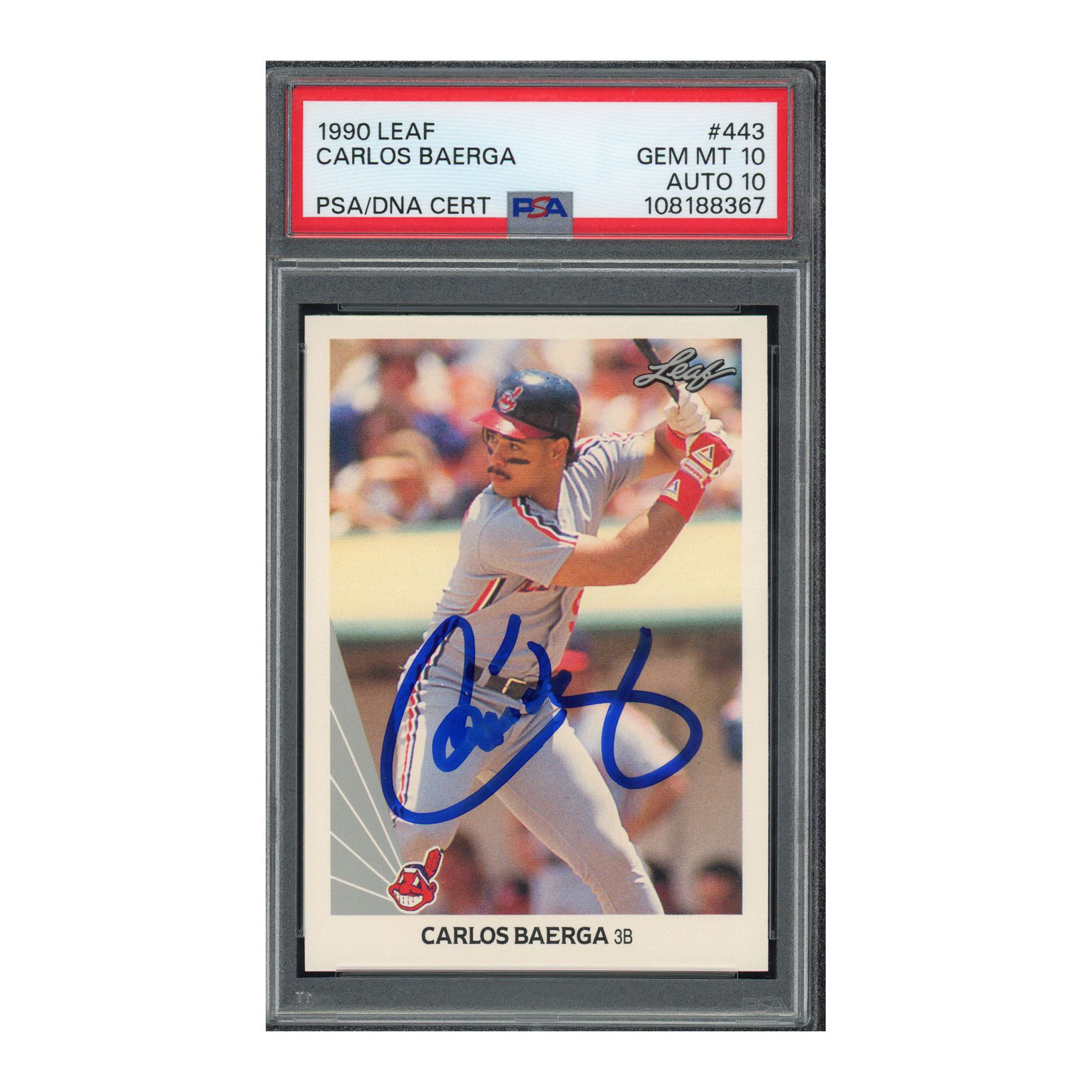1990 Leaf #443 Carlos Baerga – PSA 10 GEM MINT – Rookie Card – Autographed