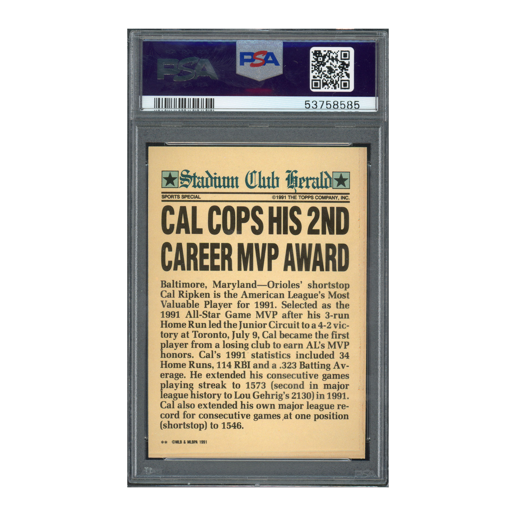 1991 Stadium Club Members Only Cal Ripken – PSA 10 GEM MT – Orioles HOF