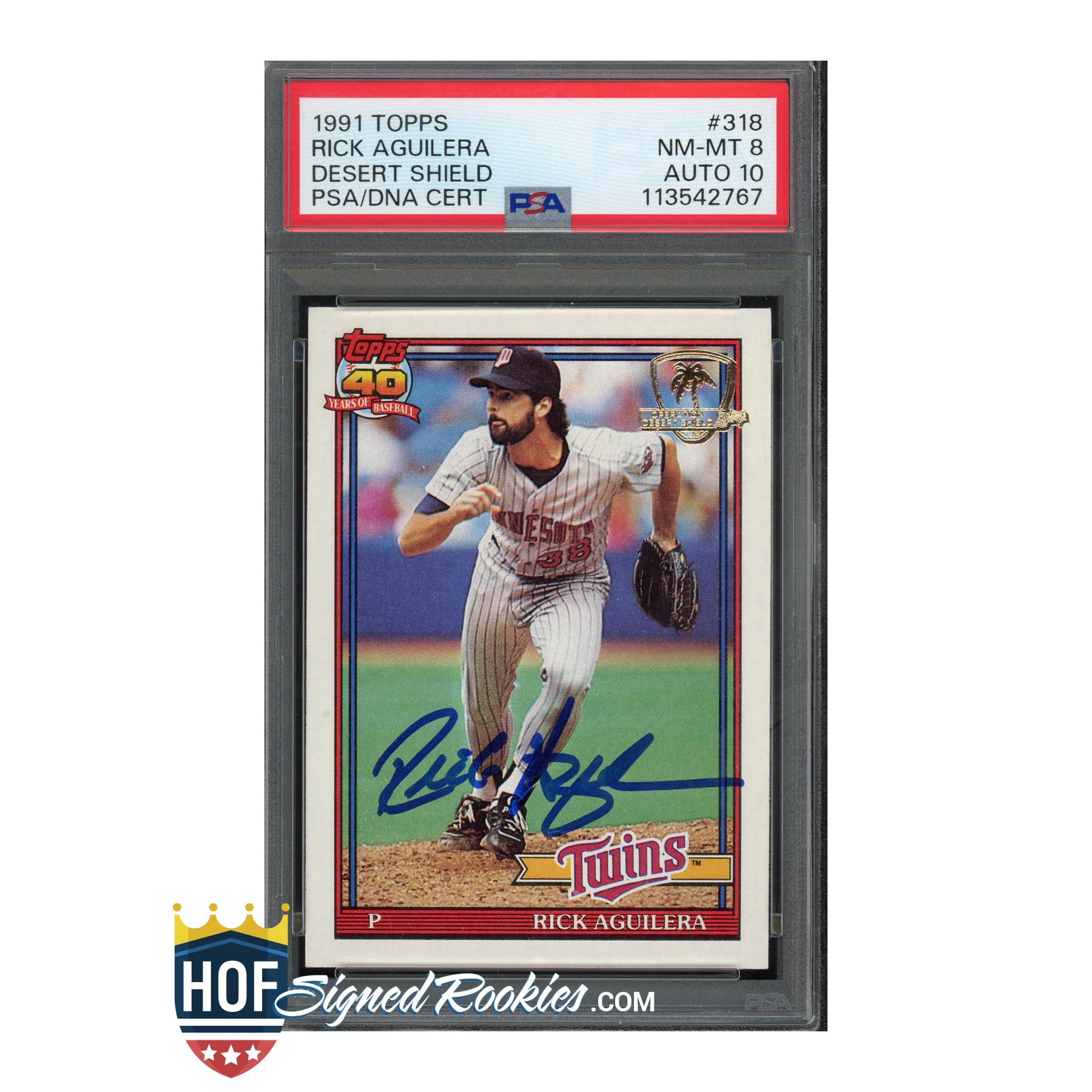 1991 Topps Desert Shield #318 Rick Aguilera – Signed – PSA 8, Auto 10 – POP 1; None Higher