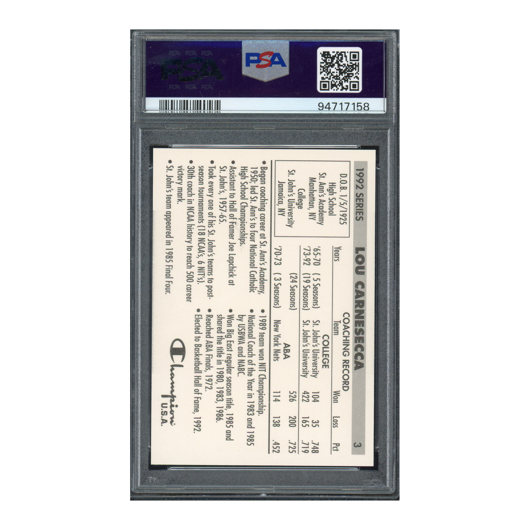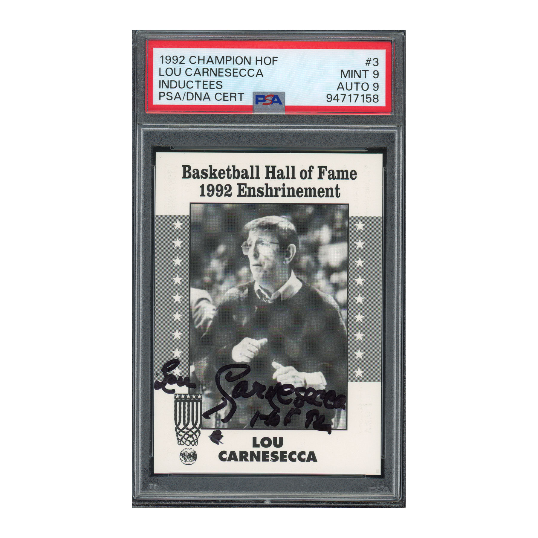 1992 Champion HOF #3 Lou Carnesecca PSA 9 Auto 9 HOF Signed RC Rookie Autograph