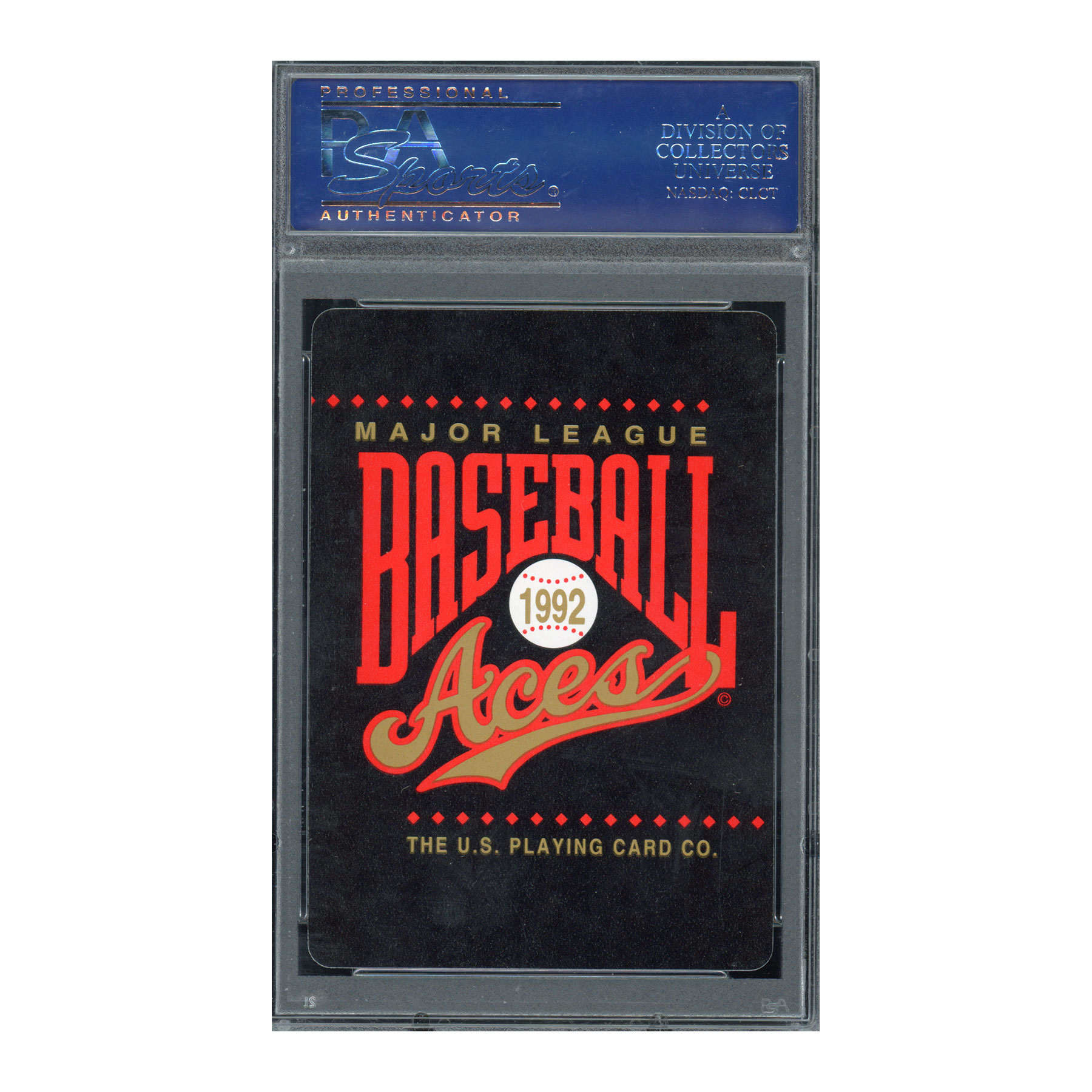 This 1992 U.S. Playing Cards Aces 9 Diamond card features Hall of Famer Cal Ripken Jr. and is graded PSA 10 GEM MINT. Part of a unique playing card series, this item highlights Ripken in pristine condition with flawless edges, sharp corners, and perfect centering. A standout collectible that combines the worlds of baseball and playing card memorabilia, it is highly sought after by Orioles fans and Ripken collectors.