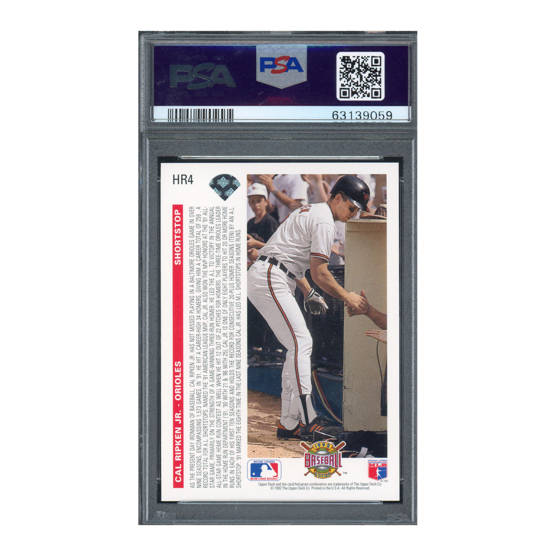 1992 Upper Deck Homerun Heroes #HR4 Cal Ripken – PSA 10 GEM MT – Orioles Hall of Famer