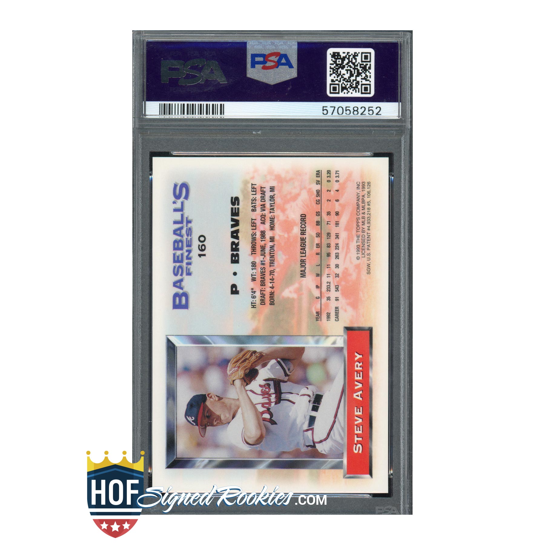 1993 Finest Refractor #160 Steve Avery – PSA 8 NM-MT – Atlanta Braves
