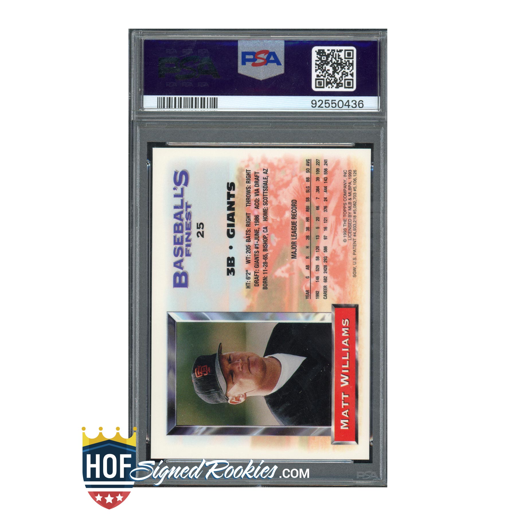 1993 Finest Refractor #25 Matt Williams – PSA 8 – *HOFSR*