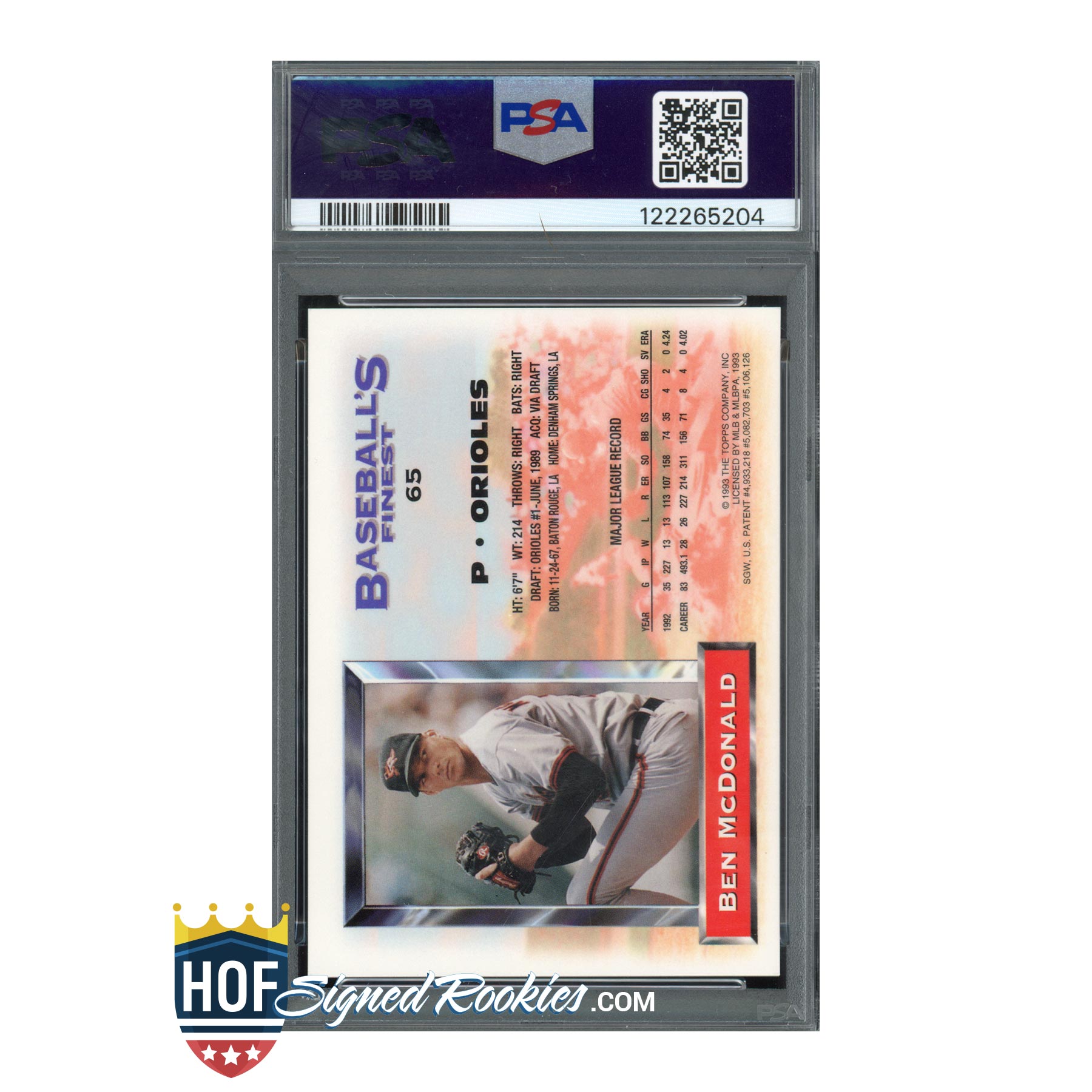 1993 Finest Refractor #65 Ben McDonald – PSA 9 / Auto 10 – Pop 1