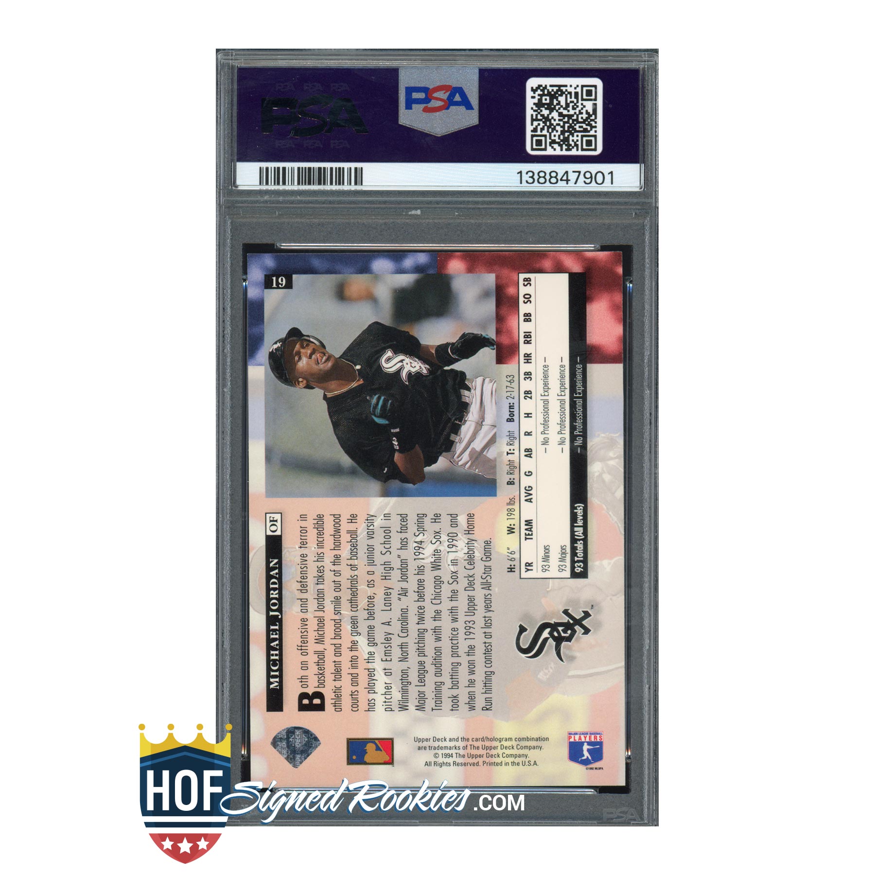 A classic Michael Jordan baseball rookie in strong condition — a must-have for Jordan collectors and a staple piece in any crossover or 1990s Upper Deck collection. *HOFSR*